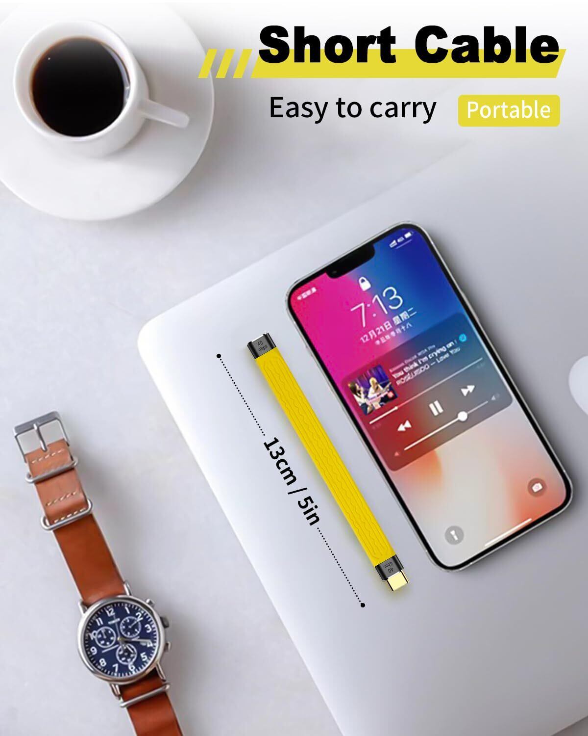 USB Type C 充電ケーブル短いはusb-c 延長ケーブル40Gbpsのデータ同期転送をサポートし、超高速の大容量データ転送能力により、お気に入りの映画、音楽、そして完全なTV番組を数秒で転送できます。Type Cハードドライブ、ポータブルSSD、macbook、アンドロイドオートPCラップトップ、タブレット、テレビ、モニター、スマートフォンなど、ほとんどのUSB Cデバイスに対応しています。