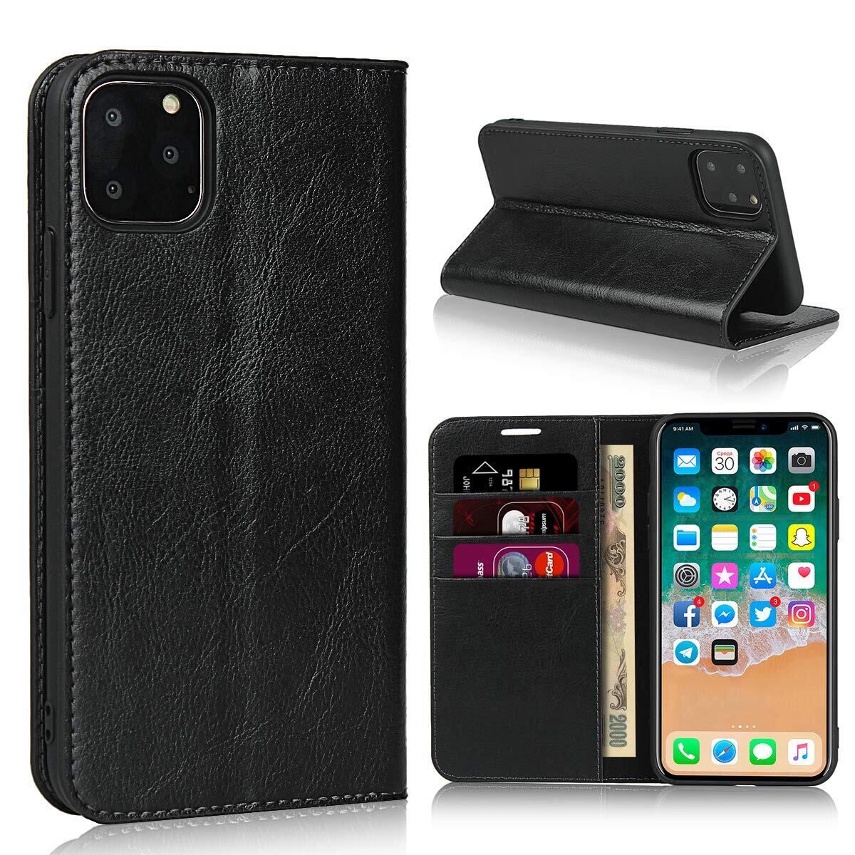 SKIASE iPhone 11 ケース 手帳型 本革 高級レザー アイフォン11 携帯カバー 財布型 横置きスタンド機能 カード入れ カード収納 耐衝撃 全面保護 軽量 薄型 落ち着いた色 ブラック