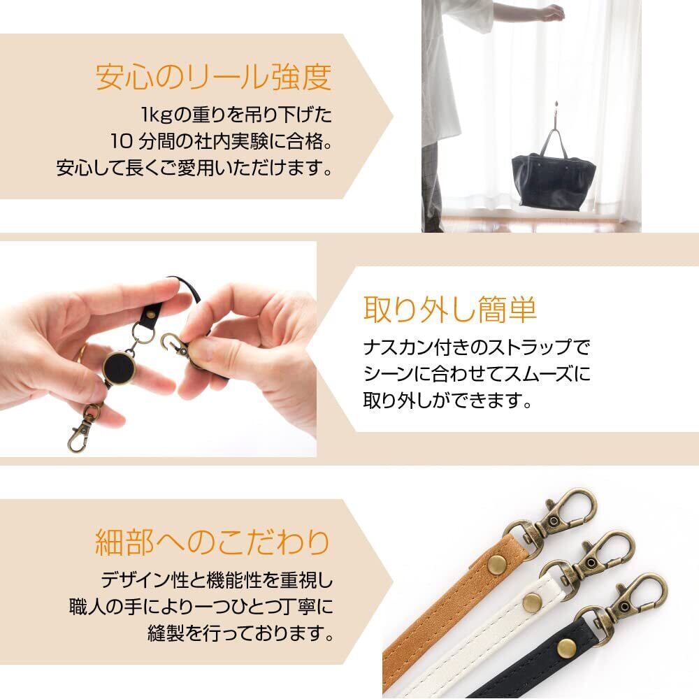 [Pretimo] リールストラップ リール付き 伸びるキーホルダー リールキーホルダー キーリール レディース メンズ PUレザー 白 黒 茶色