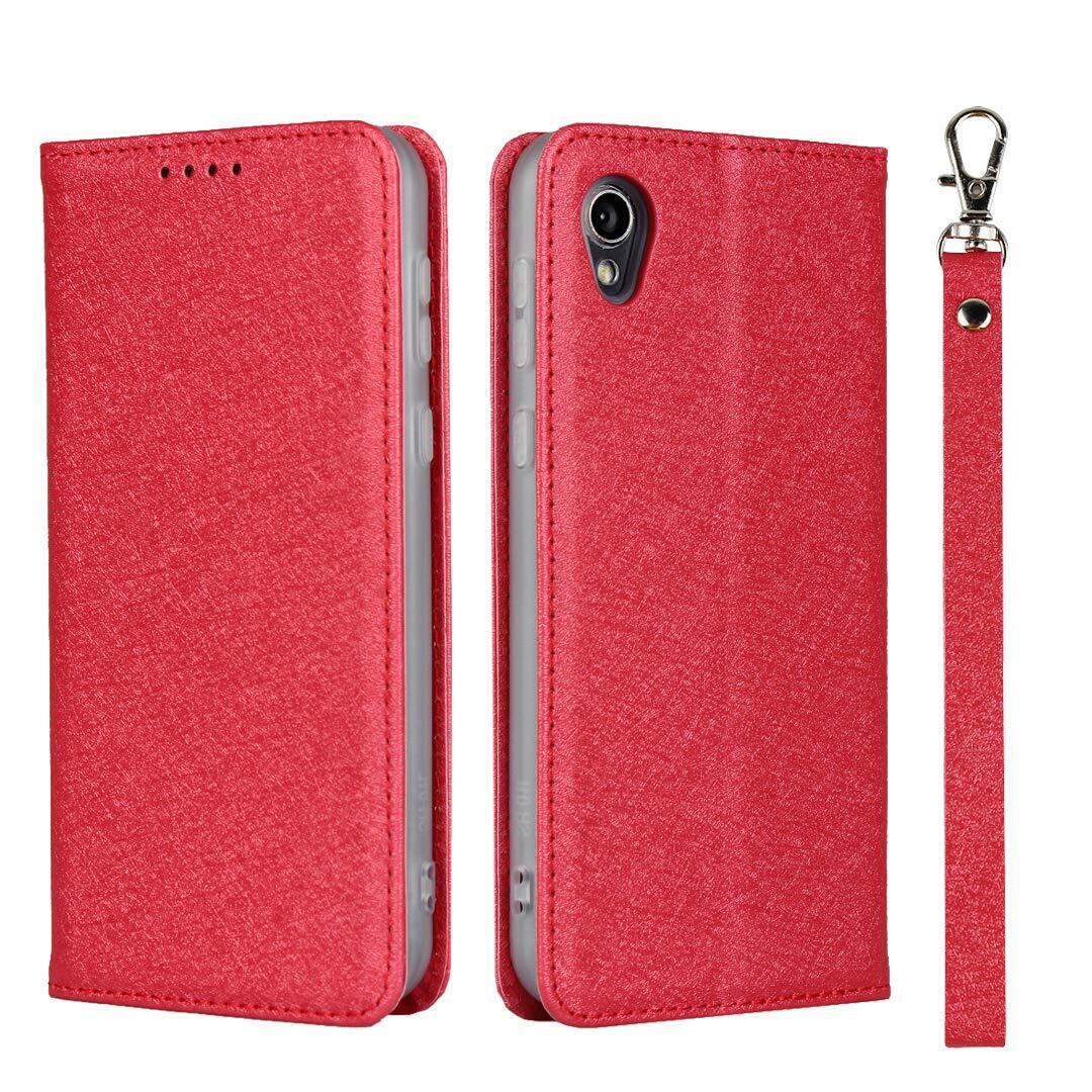 Sharp AQUOS Sense2 SH-01L / SHV43 / SH-M08 ケース / Sense 2 SH01L ケース 手帳型 case ストラップ付き PU皮革 明るい色 内蔵マグネット 携帯カバー カードポケット スタンド機能 便利 レッド