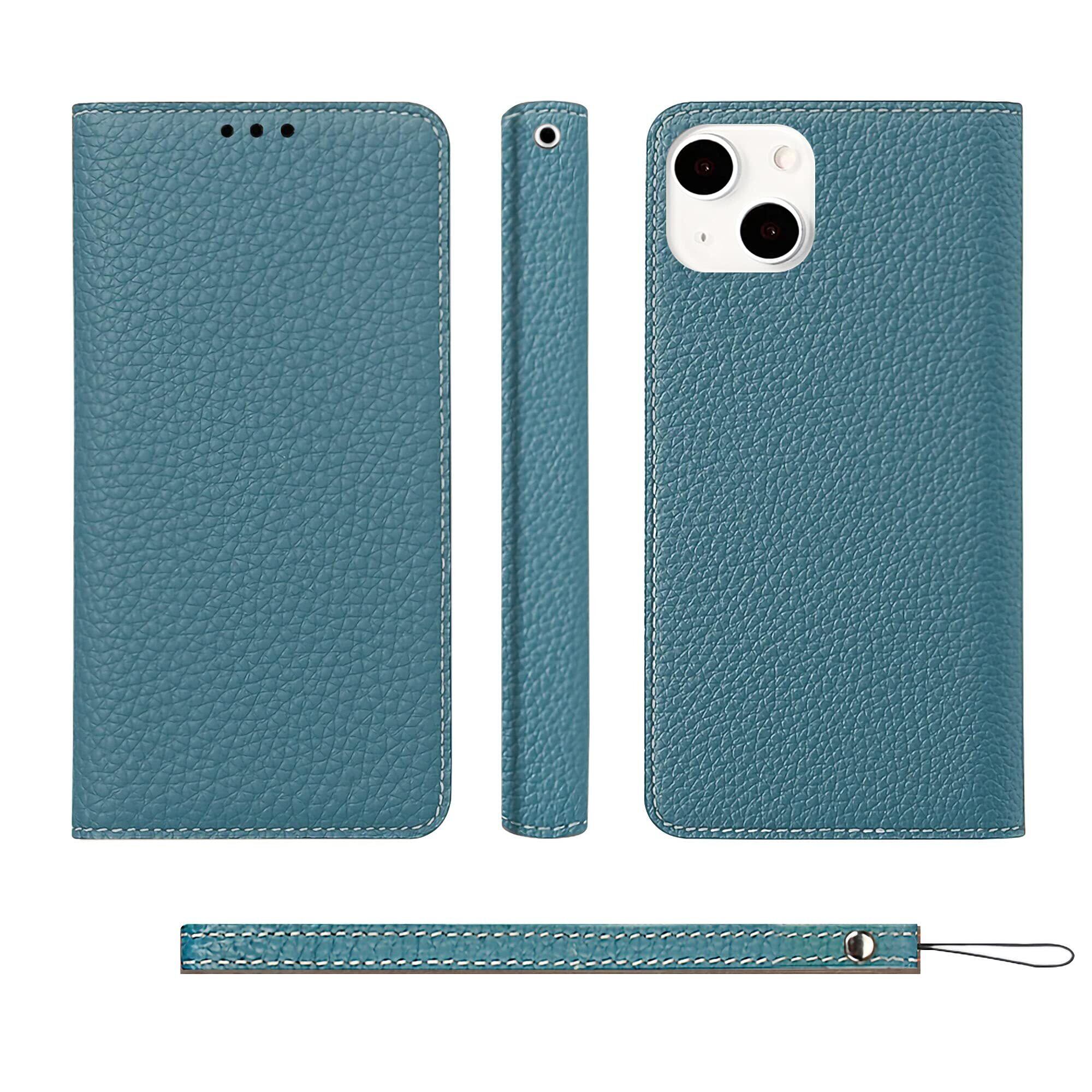 CLICSUN iPhone13 Mini 対応ケース 高級牛本革ケース 手帳型 iPhone13Mini 対応カバー 本革 レザー アイフォン13Mini 対応カバー スタンド機能 ストラップ付き マグネット式 カードポケット ギフトボックス付き ブルー