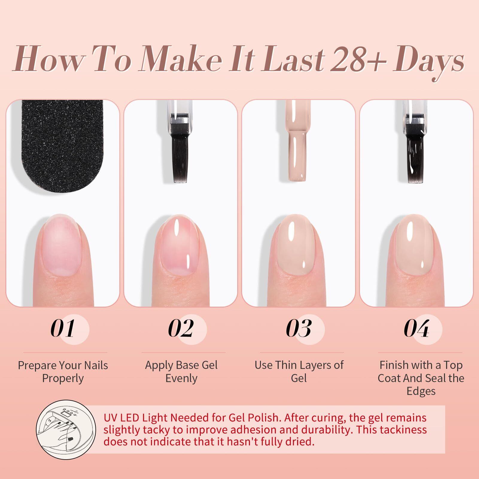 28日間持続:BORN PRETTY ミルキーホワイト ヌードピンク ジェリージェルポリッシュセットは、適切な塗布方法で28日間以上、高光沢で持続します。強力で長持ち、柔軟性があり、優れた密着力で、専門家の手を借りなくても完璧な仕上がりを実現します。
