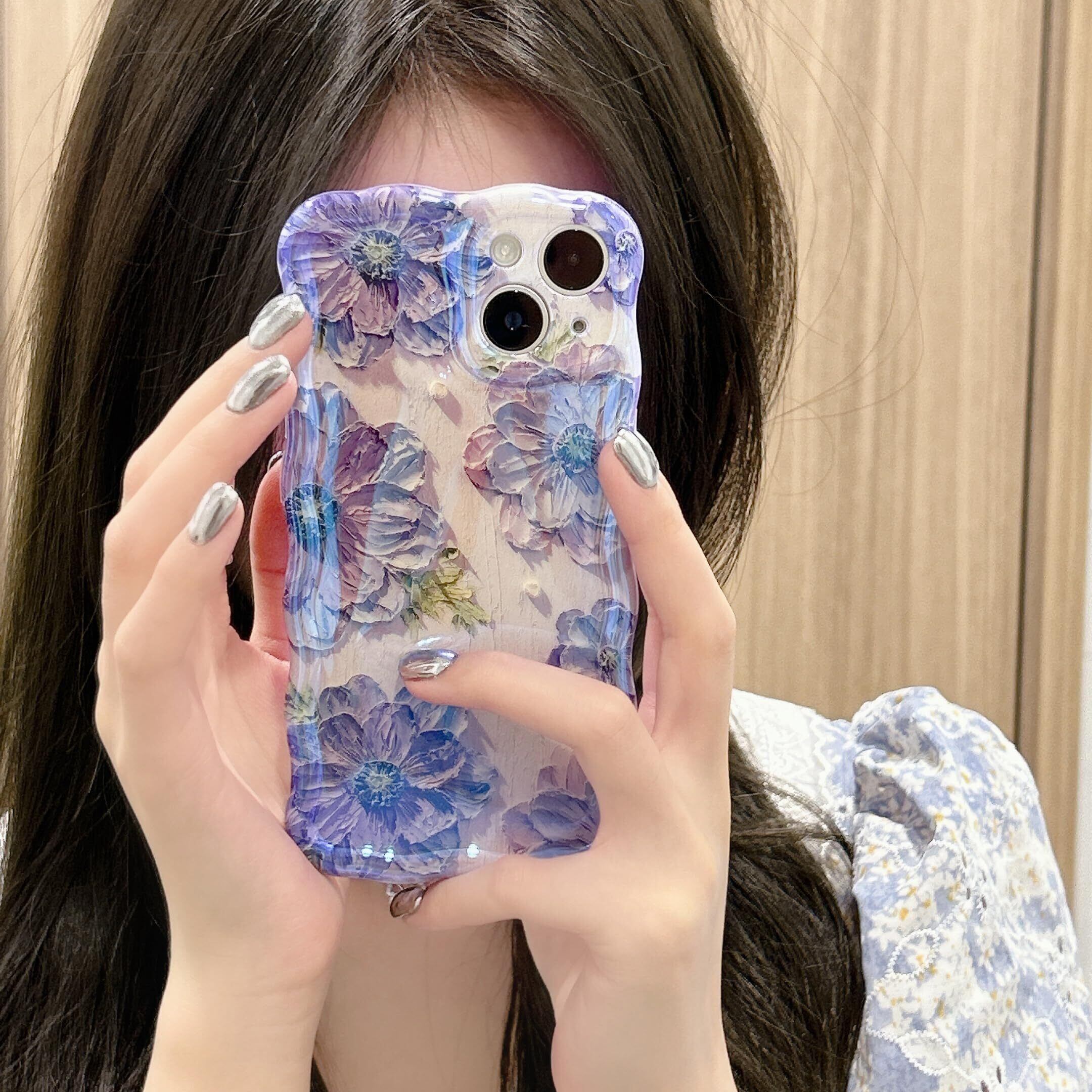 QLTYPRI iPhone 13 Pro MaxケースTPUカバー おしゃれ 韓国 可愛い 花柄 薄型 軽量 耐衝撃 スマホケース ワイヤレス充電対応 ストラップホール付き アイフォン13 Pro Max ケース 6.7インチ 対応 - パープル