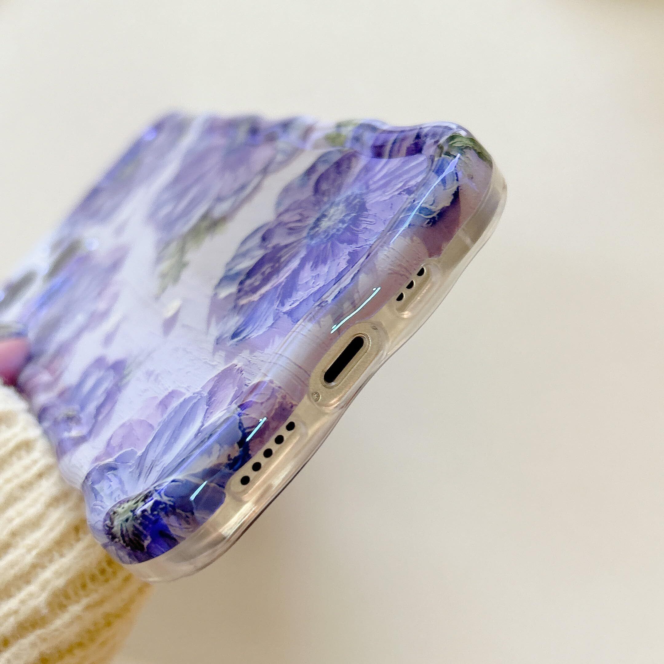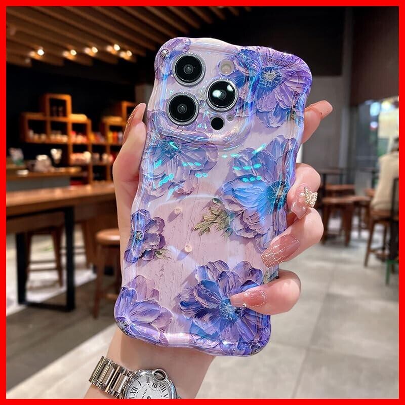 【花柄デザイン ▪ フィット感】背面にカラフルな油絵の花柄、色味が優しく、いつものスマホに上品さをプラス。側面が透明なデザインからiPhone 13 Pro Maxカラーが見えるデザインで、本来の美しさと高級感をそのままに映り出し。