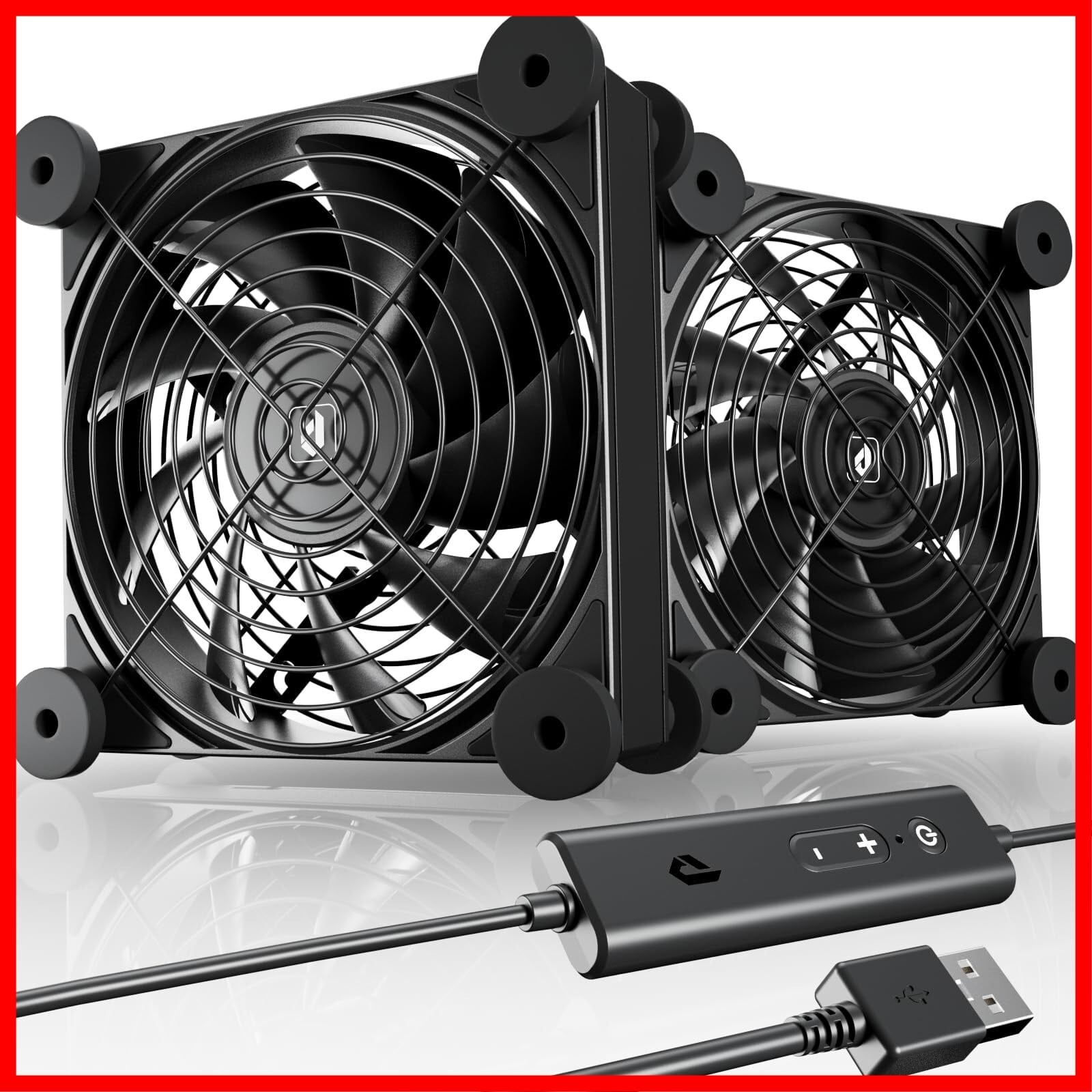 upHere USB冷却ファン 12cm 静音 強力 2連 5V USB換気扇 ミニファン 小型扇風機 送風機 冷却クーラー 4段階風量調節 車中泊/PS4/ルーター/ミニPCなど 薄型【U3UK2】