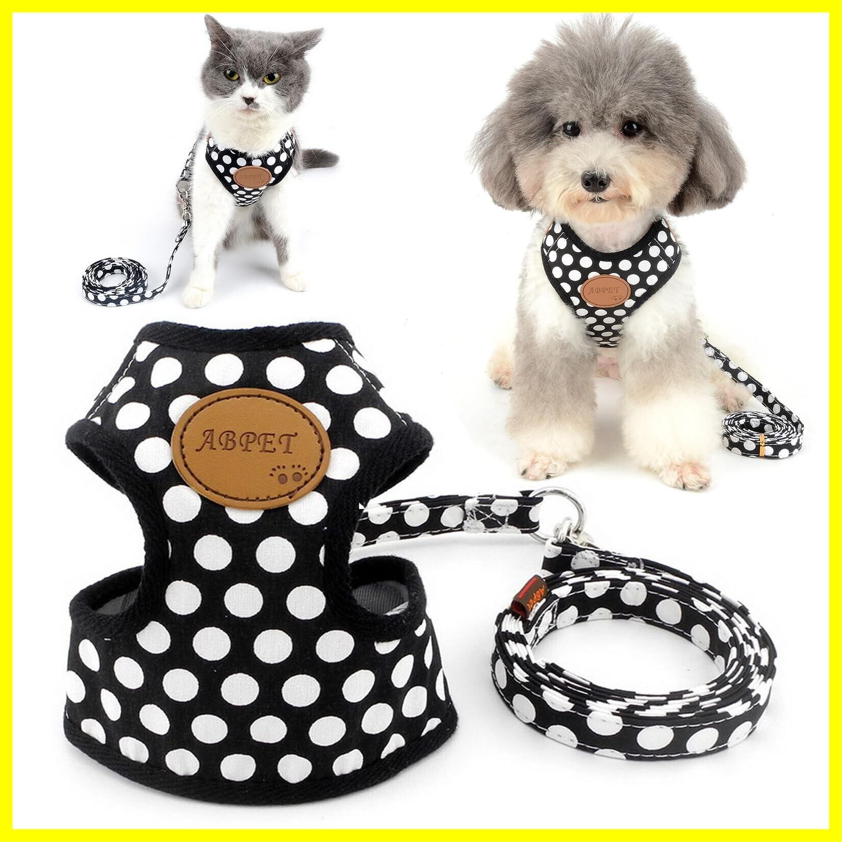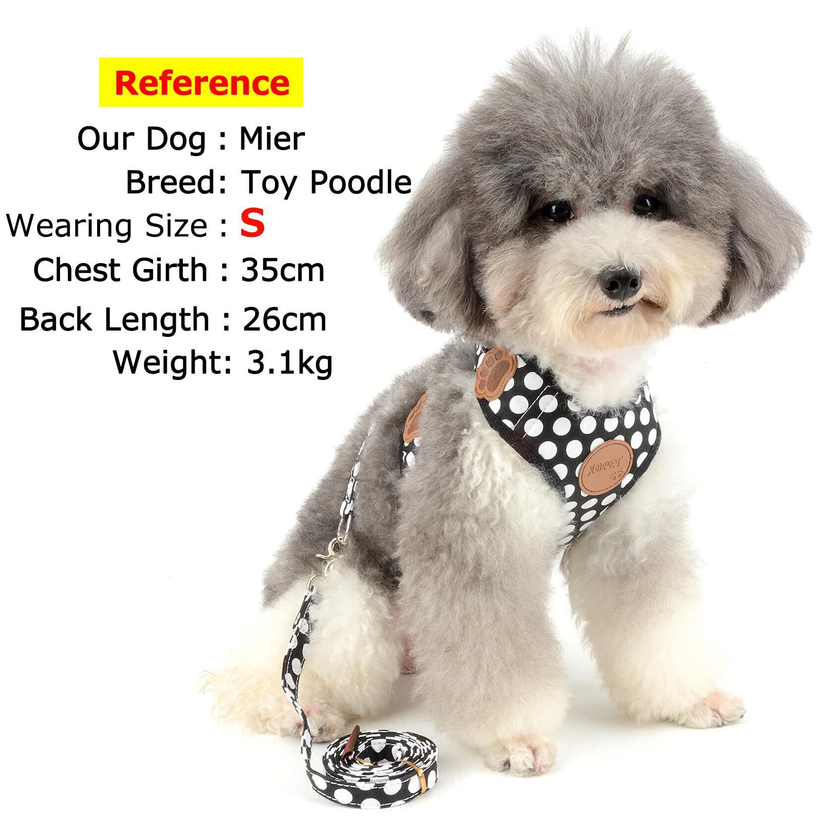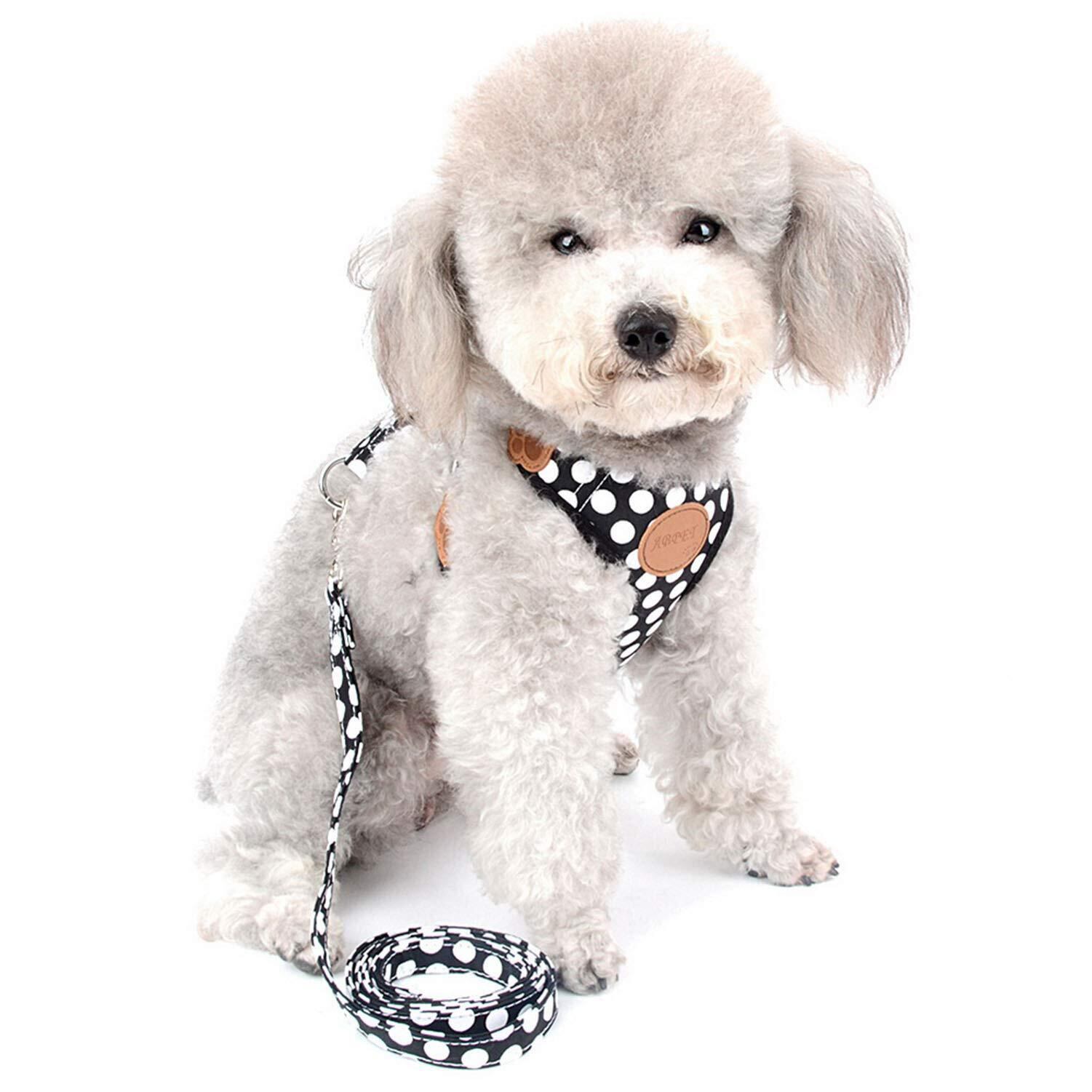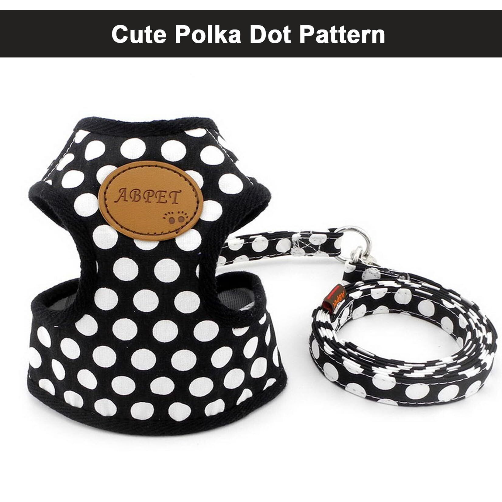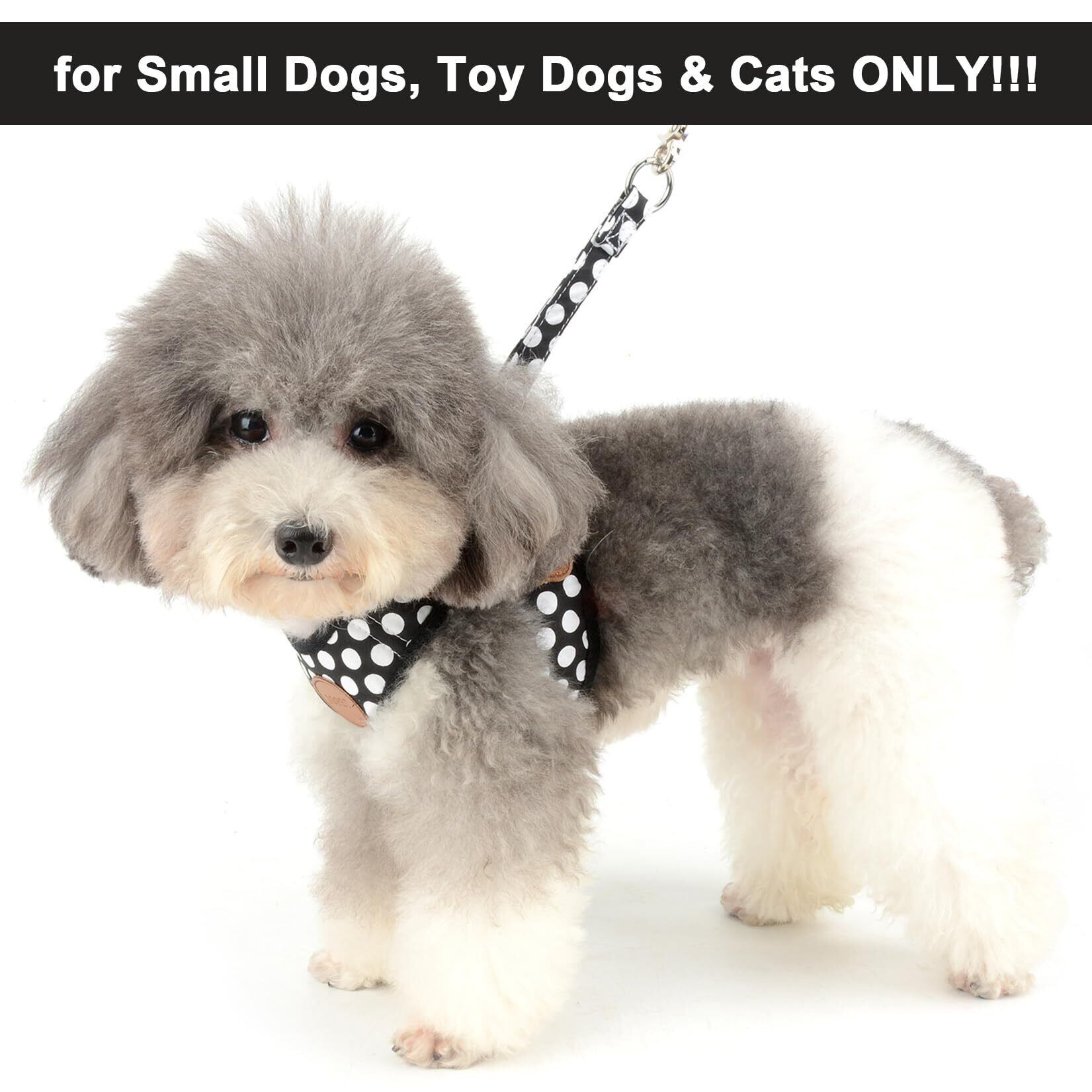 ZUNEA 犬用 ハーネス リード セット 可愛い ドット柄 ソフトメッシュ 胴輪 チワワ用 散歩 ペット用品 ドッグウェア 小型犬用 ブラック, S