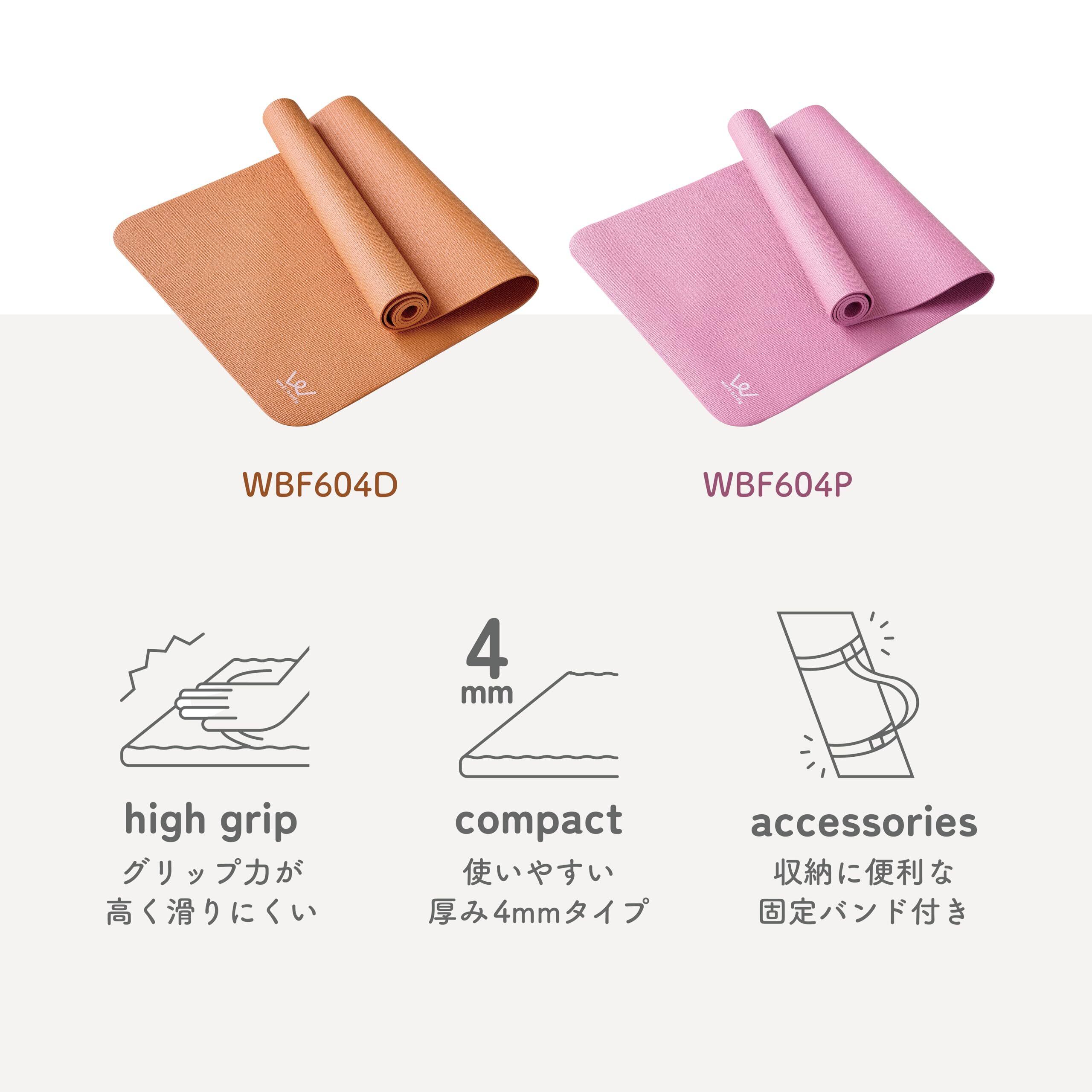 【軽量で扱いやすいヨガマット】軽量で扱いやすい厚みのヨガマットです。豊富なカラー展開で自宅の家具の色に合わせることもできますし、お好みのカラーを選べます。厚みは軽くて持ち運びにも便利な4mmタイプと、身体への衝撃を吸収する6mmタイプの2種類から選べます。