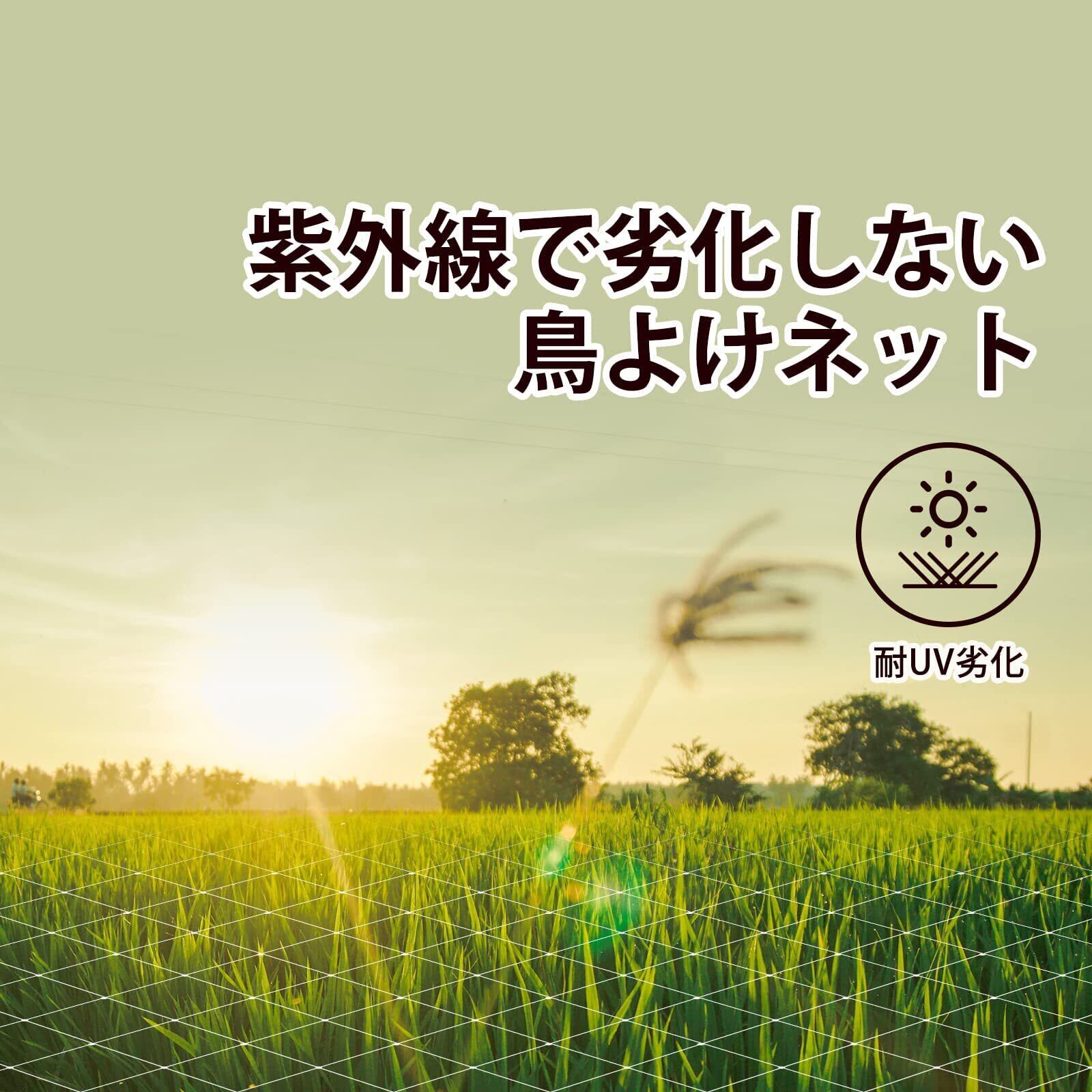 [軽量化で柔らかい 野菜を傷つけません] 軽くて伸びやすいので女一人でも楽に張れます。またハサミでお好みなサイズにカットしてご利用いただけます。ネットは軽くて柔らかいので、野菜などが成長しても野菜の葉や実を傷つけません。春は落花生や稻の種、夏はトマト、秋はインゲン、冬はハクサイなどを害鳥から守ります。