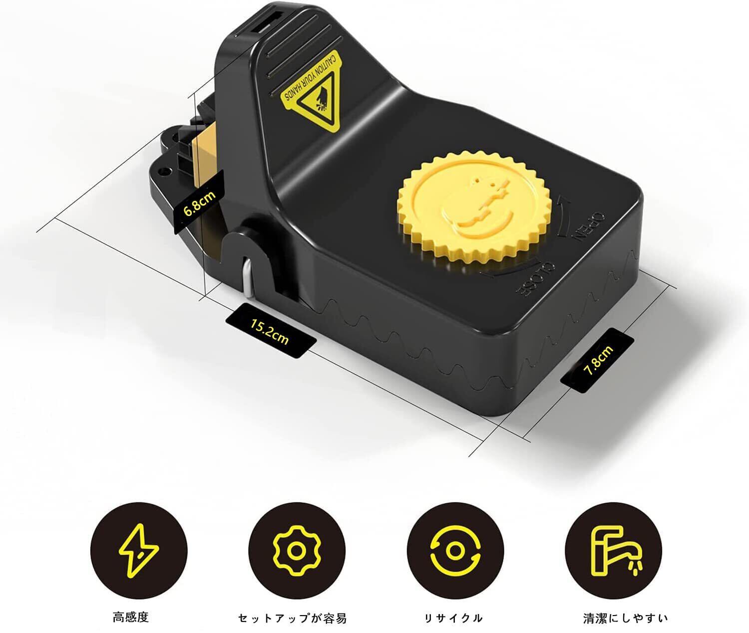 【大型ネズミ捕り器】私たちのネズミ捕り器のサイズは15.2 x 7.8 x 6.8 cm、他のネズミ捕り器よりも大きく、より大きな開口とより大きな咬合力を持ち、重さ3ポンドのラットを簡単に殺すことができる。他の小型ネズミ捕り器はマウスを捕捉することしかできず、捕捉することもできない。