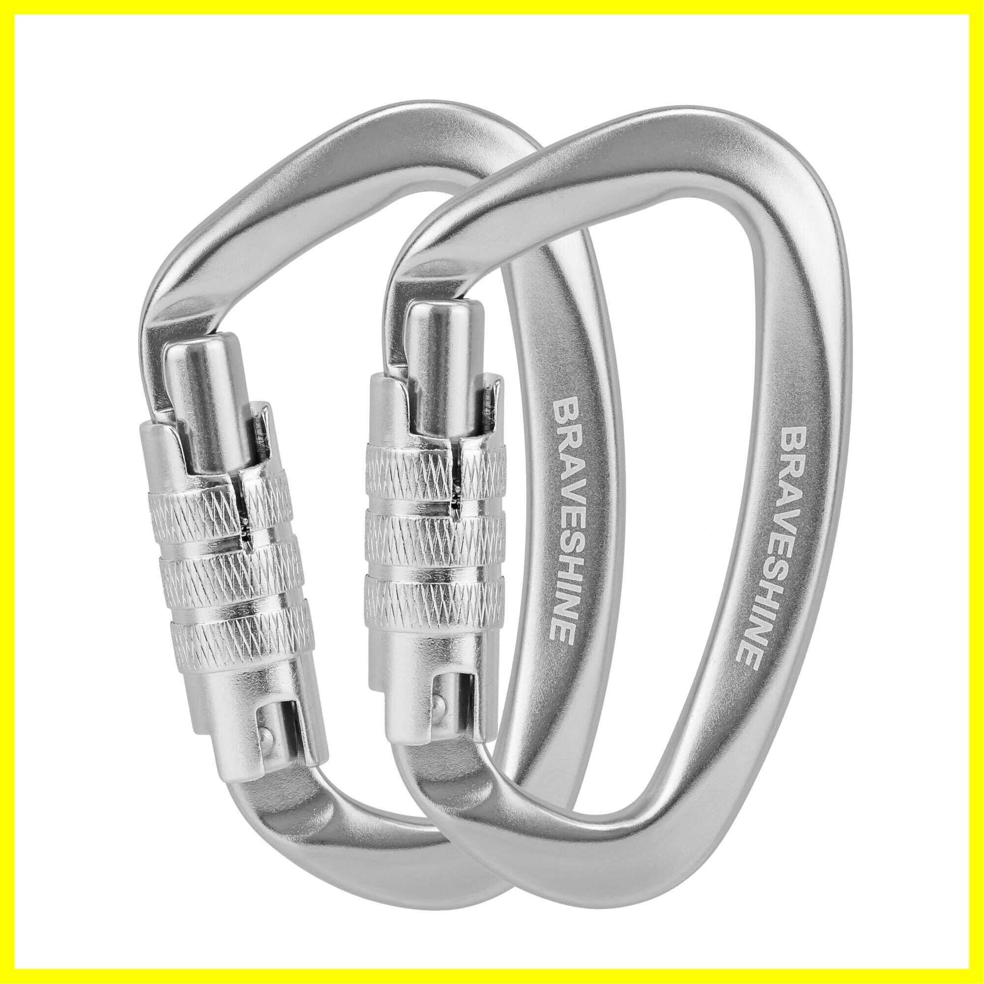カラビナ 12KN オートロック式 BRAVESHINE 耐荷重1200kg ロックカラビナ Dリング 軽量 ハンモック タープ キャンプ用 荷物のフック 犬のリード用 多機能 2個セット