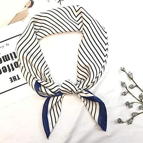 定番で 人気の おしゃれ な ストライプ シルク スカーフ 。首に巻くのはもちろん 手首 足首 頭 などアクセサリー感覚で使えるのがポイント!