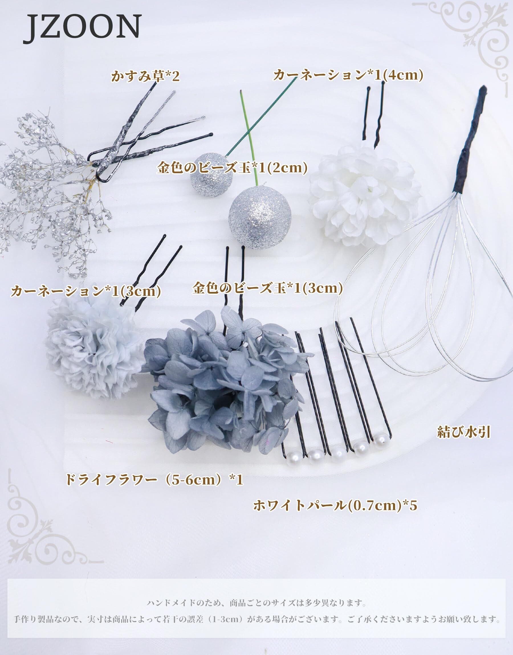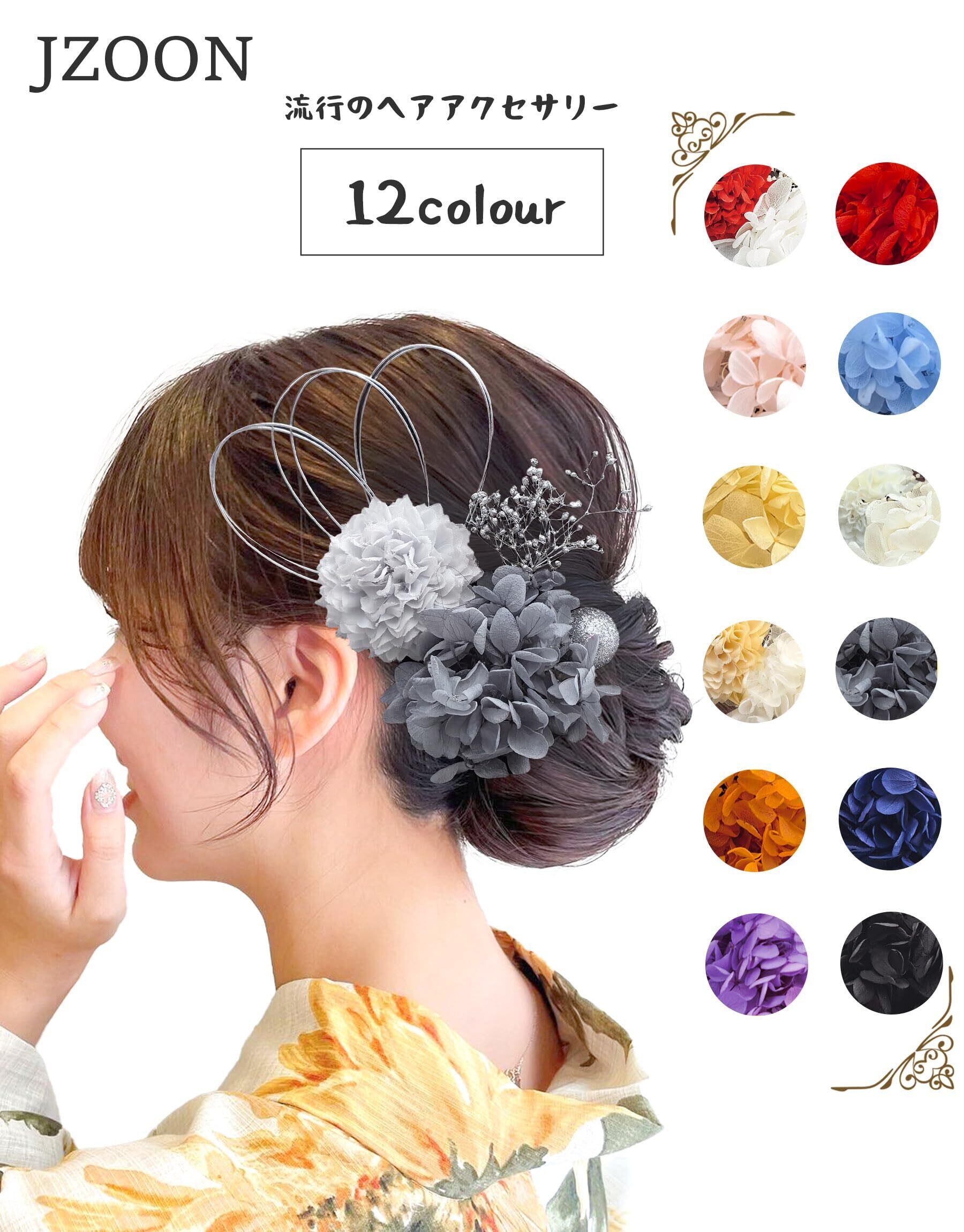 全12色 浴衣 髪飾り 成人式 袴 卒業式 和服 和装 着物 ドライフラワー ピンポンママ 紫陽花 かすみ草 金色の玉 水引 赤 白 青 オレンジ B7001