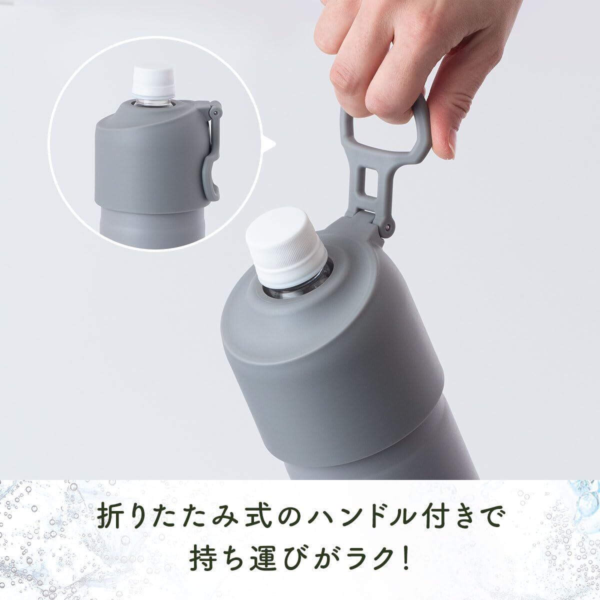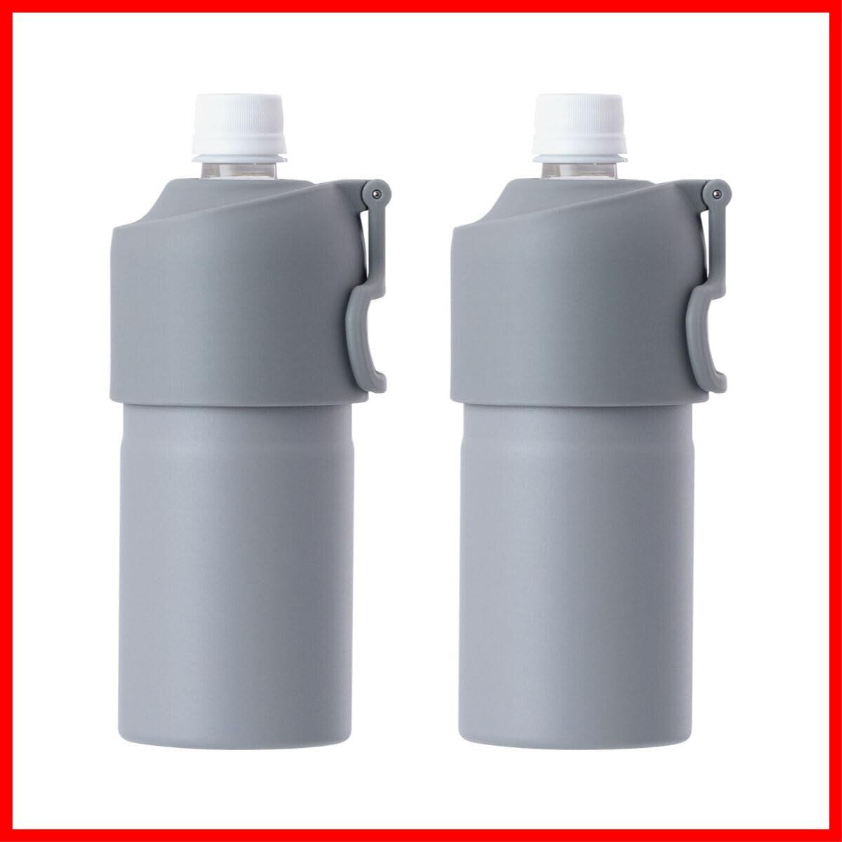 アトラス ペットボトルホルダー 水筒 2個セット 保冷 ペットボトルクーラー 500ml 650ml 真空断熱 グレー 折りたたみ ハンドル 取っ手付き ボトルインボトル ABIB-EGY2P