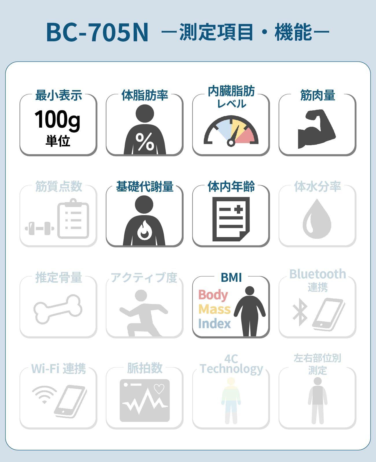 タニタ 体重計 体組成計 BC-705N【体脂肪率/内臓脂肪レベル/筋肉量/基礎代謝量/体内年齢/BMI/日本製/乗るピタ】