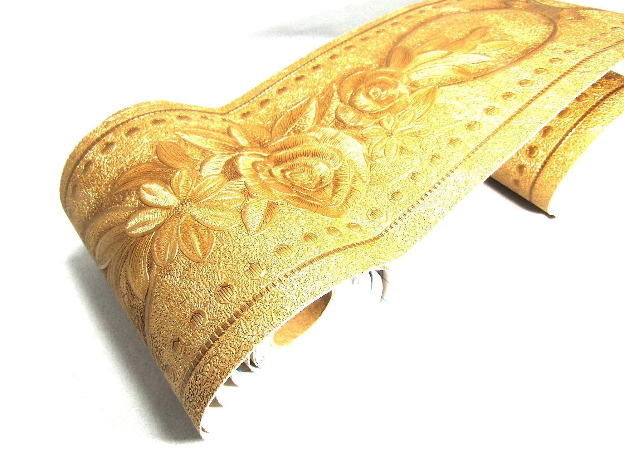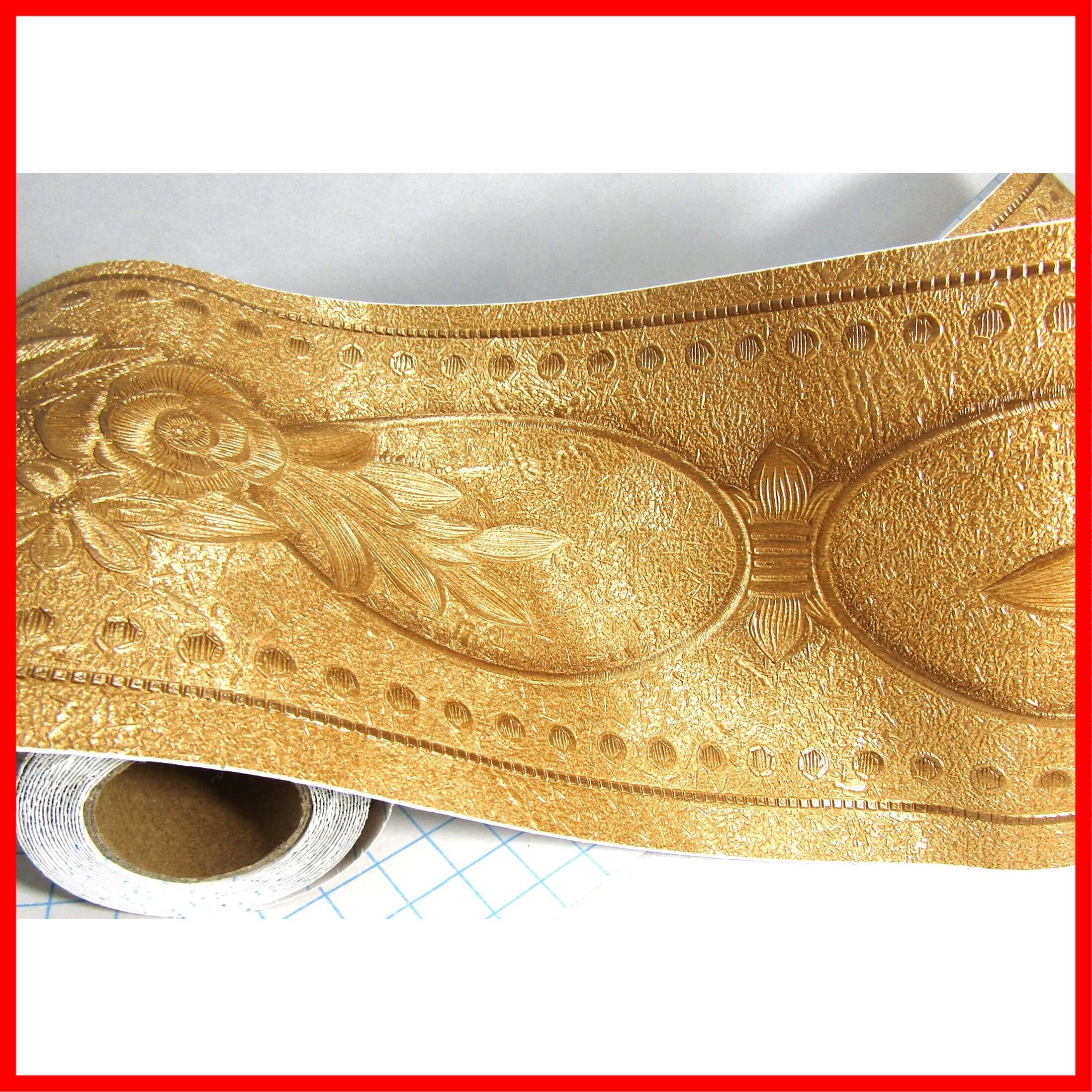 壁紙トリム ボーダー シール 浮彫 3D リフォーム ラインテープ ローズ デザイン (ゴールド)