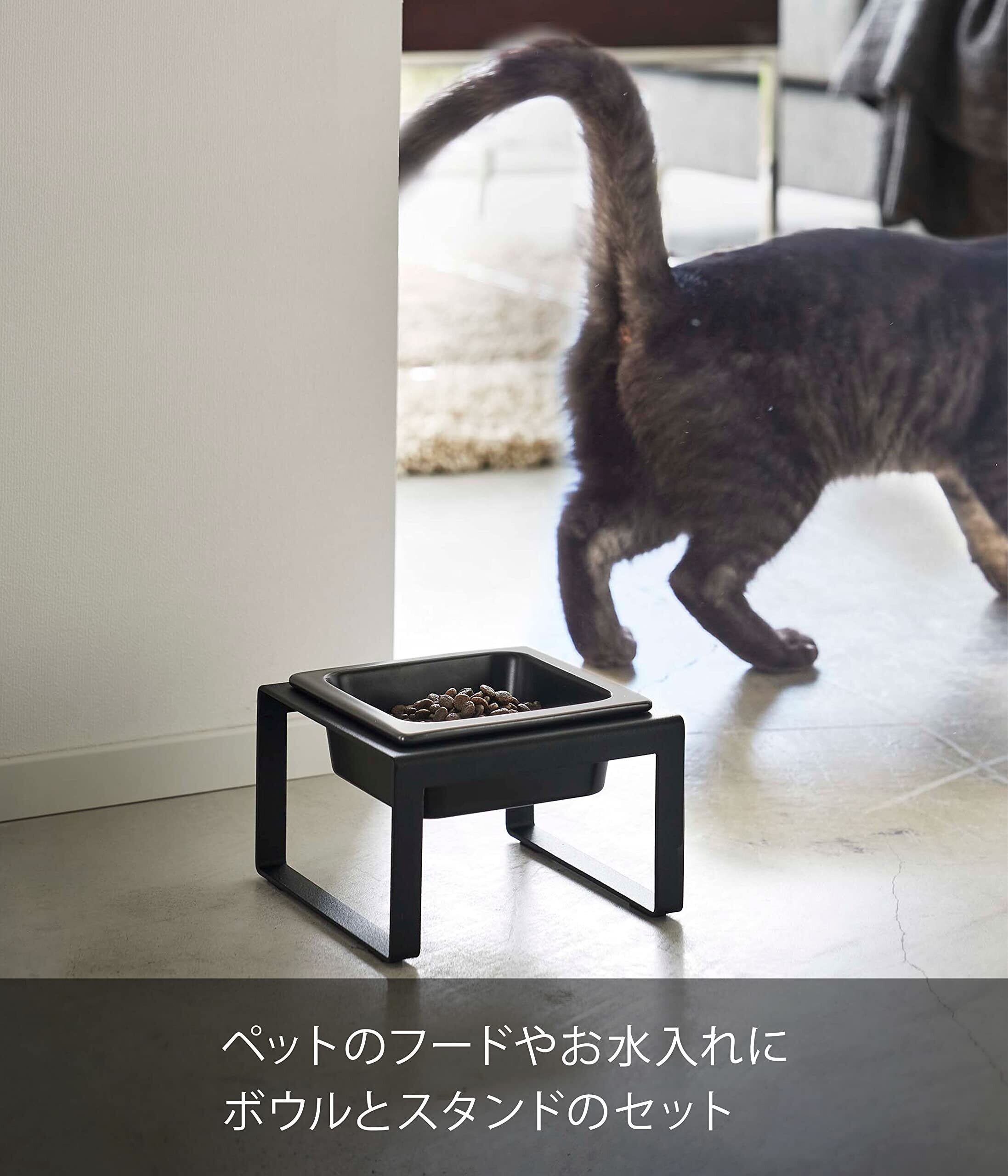 山崎実業(Yamazaki) ペットフード ボウルスタンド トール ブラック 約W15×D15.5×H10cm タワー tower 餌入れ お水入れ 5817