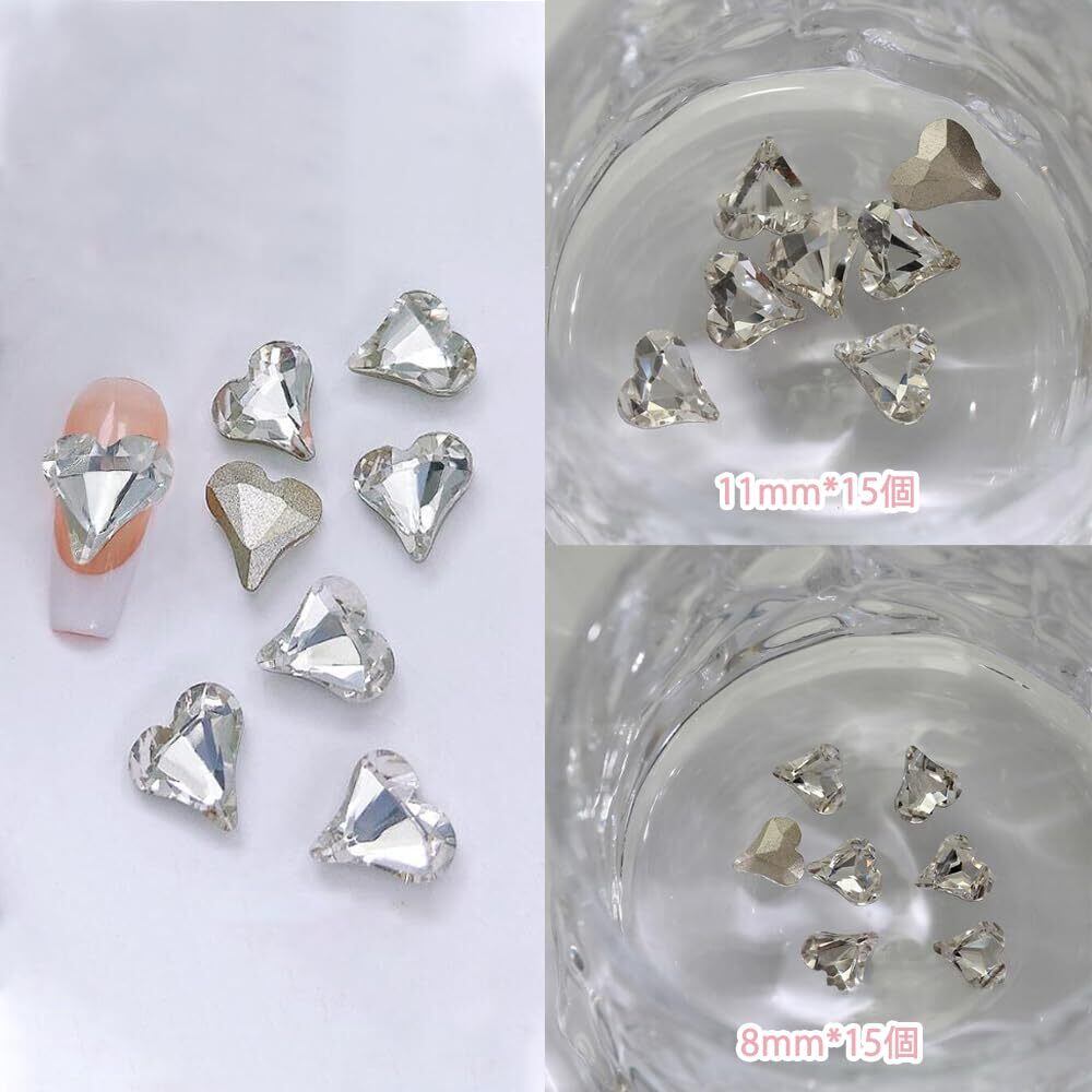GOODCHI ネイルパーツ 2種類 30個セット ハート ネイルストーン 立体 ハート ストーン キラキラ クリスタル ガラスストーン ネイルアート デコパーツ 8mm 11mm