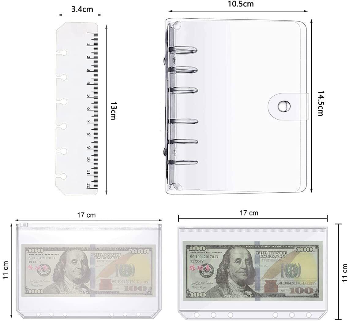 システム手帳 A7 PVC バインダー ミニ6穴手帳 ポケットサイズ PVCクリア素材 柔らかい ボダン付き A7クリアポケット 3枚付き 定規付き ノート