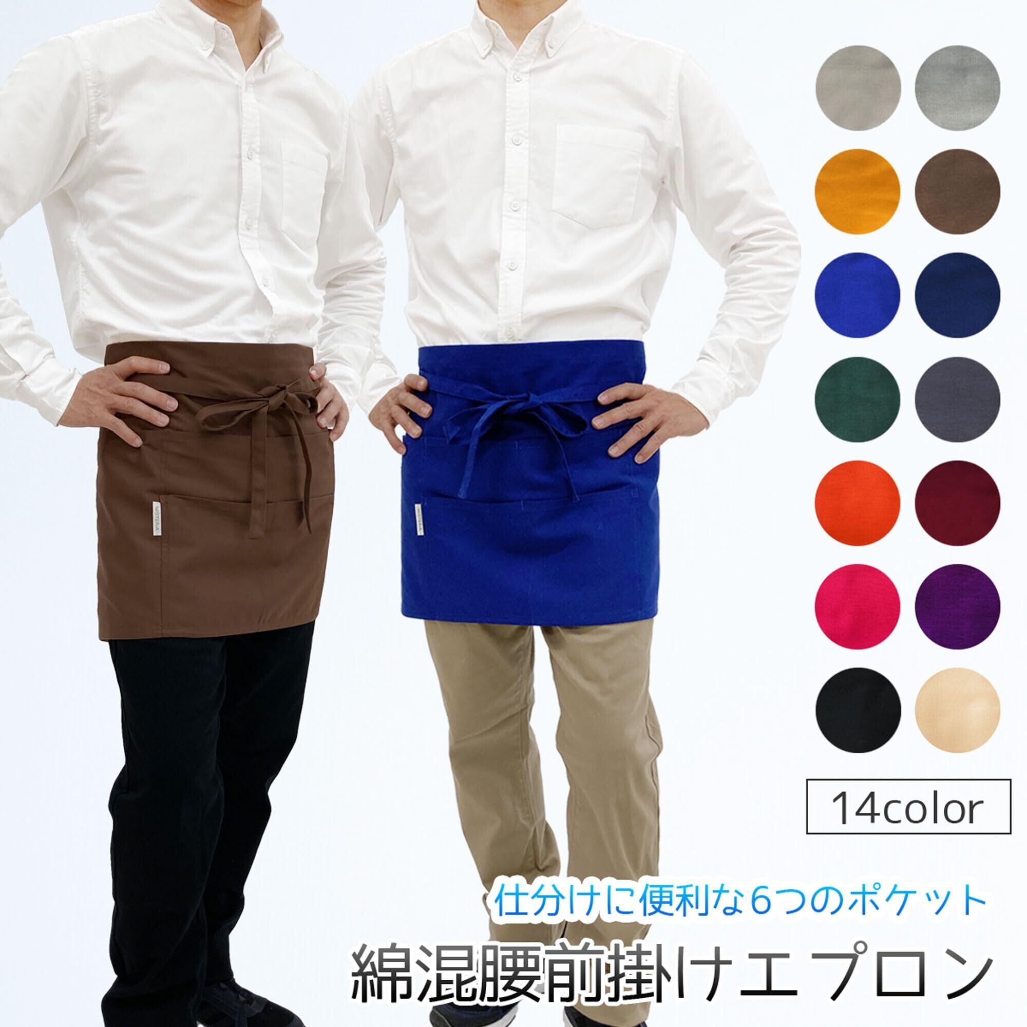 [トーマセンイ] エプロン ショート丈 メンズ レディース おしゃれ 綿混 腰前掛け フリーサイズ ギャルソン カフェエプロン ユニホーム 102