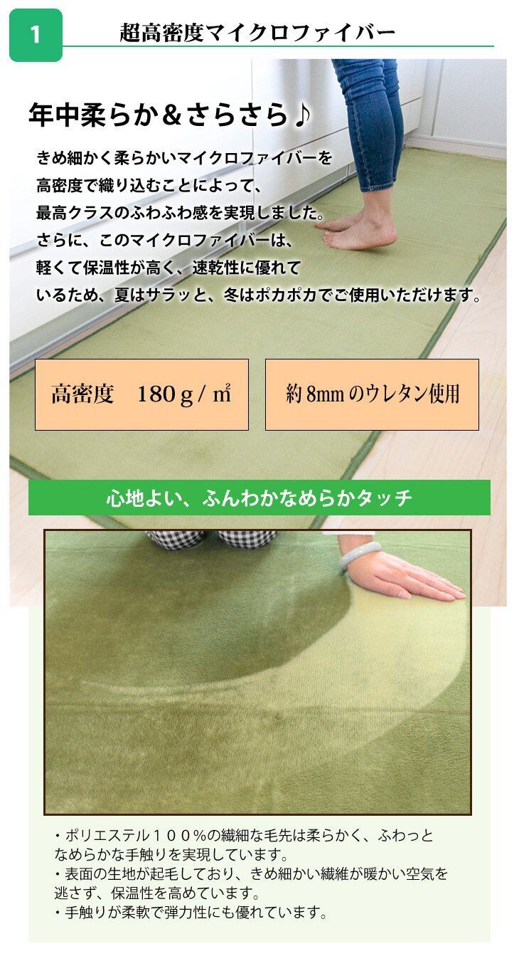 サイズ:65×240cm 表地:ポリエステル100% パイル長さ:約5mm 中材:ウレタンフォーム約8mm 裏面:不織布(滑り止め加工)