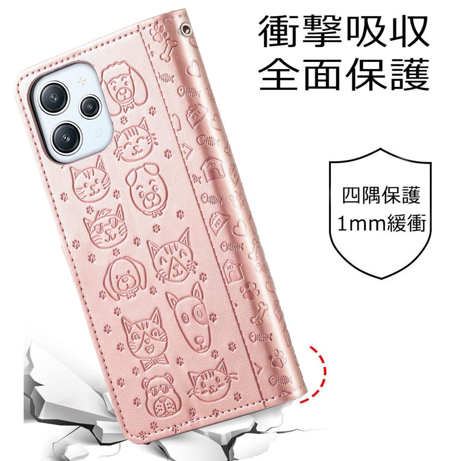 Xiaomi Redmi 12 5G 犬猫 手帳型ウォレットケース redmi 12 5g カードスロット付き 手帳型 カバー 人気 おしゃれ ケース 高級PUレザー スマホケース 【ZIHEWJLAI 】レドミ 12 5G XIG03 ケース 手帳型 キュートな猫柄フリップカバー 手綱 redmi125g ケース カバー スマホケースカード収納 マグネット式 スタンド機能(ローズゴールド)