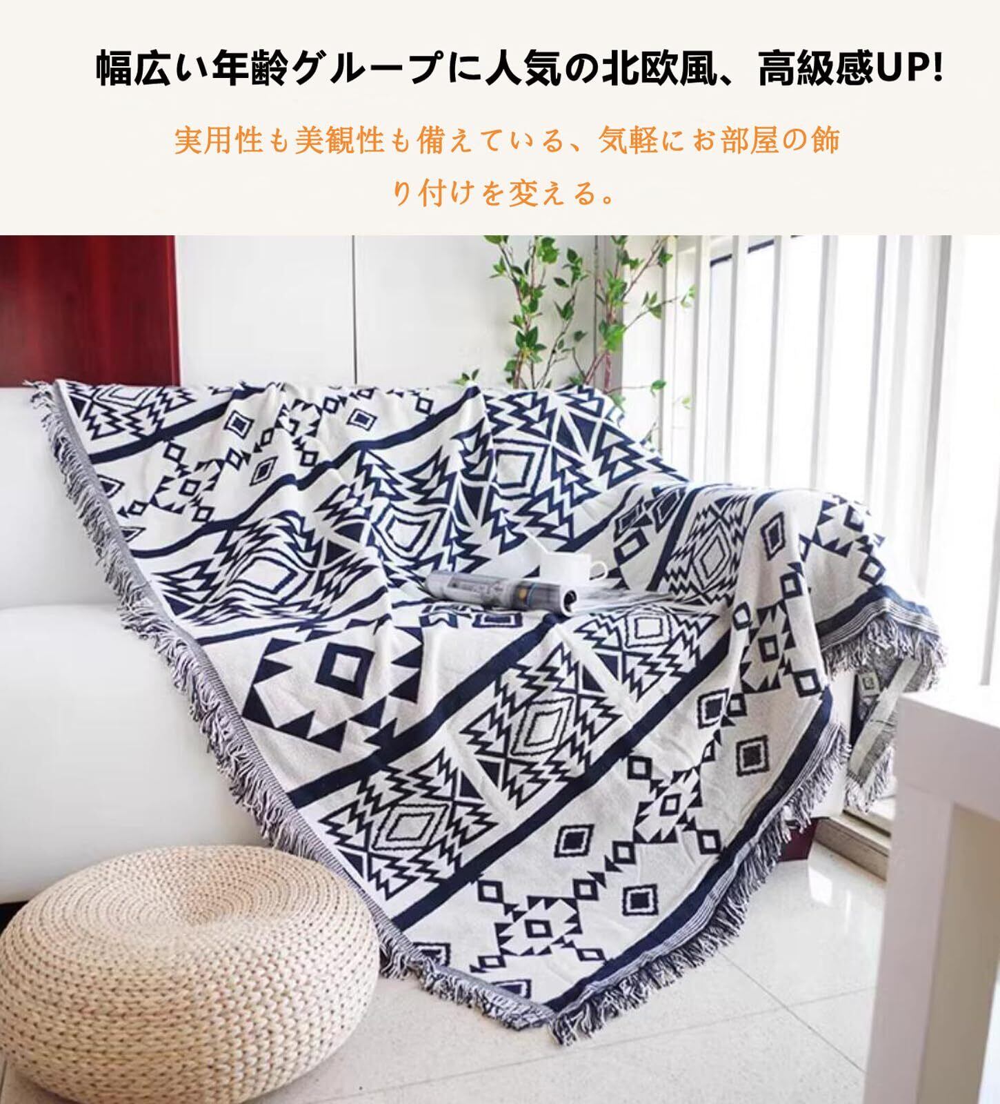 TMVOK 北欧風 マルチカバー ブランケットフリンジ付き ソファカバー おしゃれ ソファーかばー リバーシブル 汚れ防止 保護カバー 綿 2人掛け 3人掛け 肘付き 肘なし カウチ ベッドカバー テーブルクロス テーブル掛け枚 長方形 大きい 洗える 四季通用 130*180cm