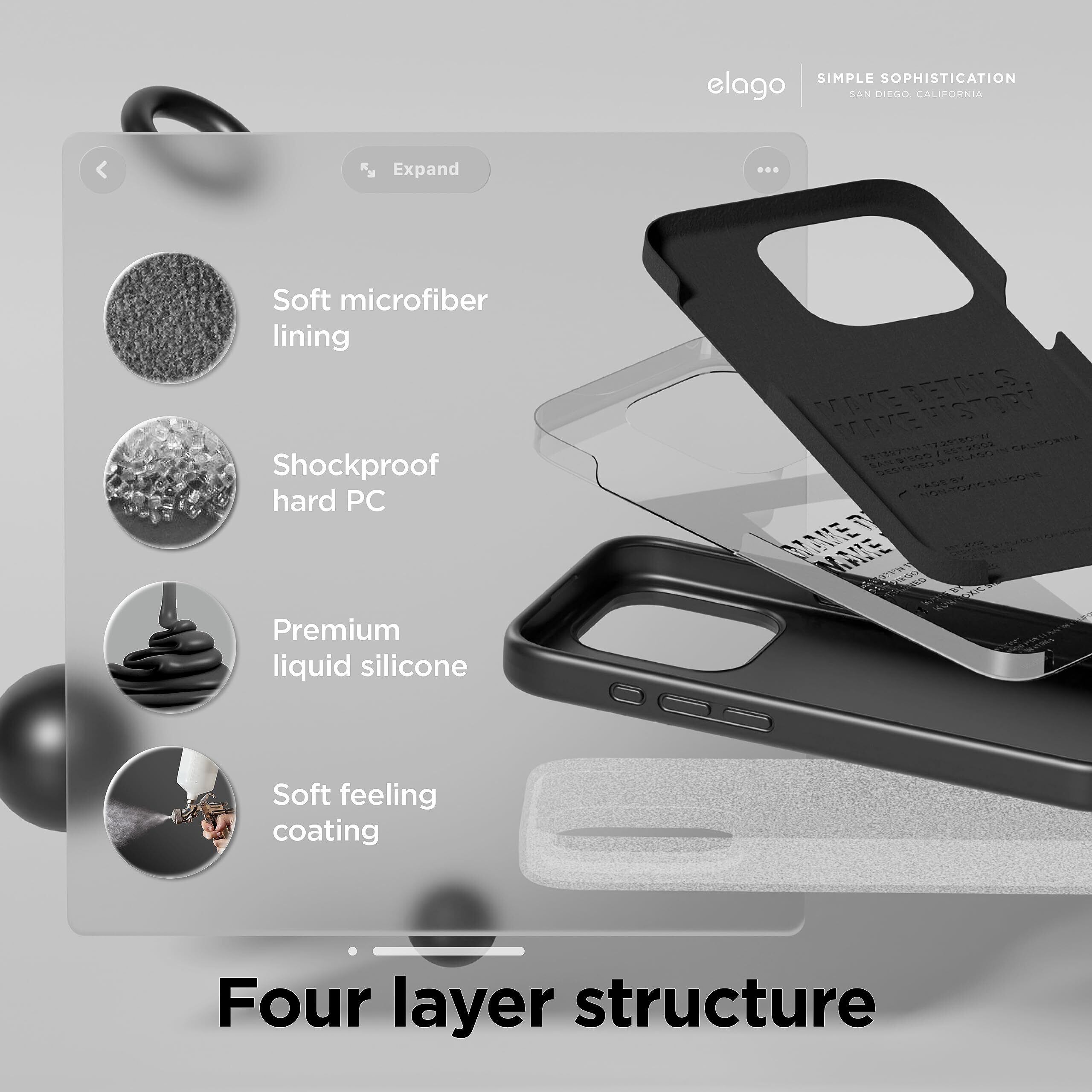【elago】 iPhone15ProMax 対応 ケース 耐衝撃 傷 指紋 防止 シリコン スマホケース スリム 衝撃吸収 サラサラ 手触り シリコンケース [ Apple iPhone15 ProMax アイフォン15 プロマックス 対応 携帯ケース ] iPhone15ProMaxケース SILICONE CASE ブラック