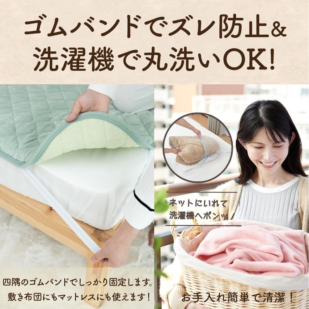 【4か所ゴム付き】四隅にゴムバンドを装備し、寝返りや動きによる布団とのずれを最小限に抑えます。通常のゴムバンドに比べて、洗濯や長時間の使用でも伸びにくい特殊強化ゴムを採用しています。ベッドのマットレスや和布団といったさまざまな寝具との組み合わせに適しており、安定感のある睡眠環境を提供します。