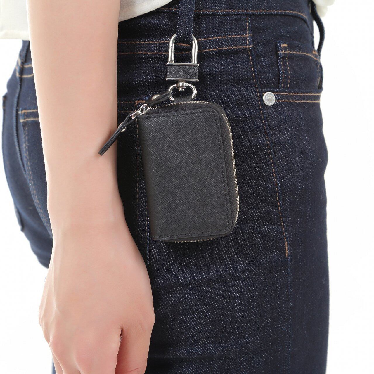 レディースとメンズどちらにも適したスタイリッシュな鍵ケースで、日常のスマートキーや車の鍵の持ち運びに便利です。耐久性とファッション性を兼ね備えています。
