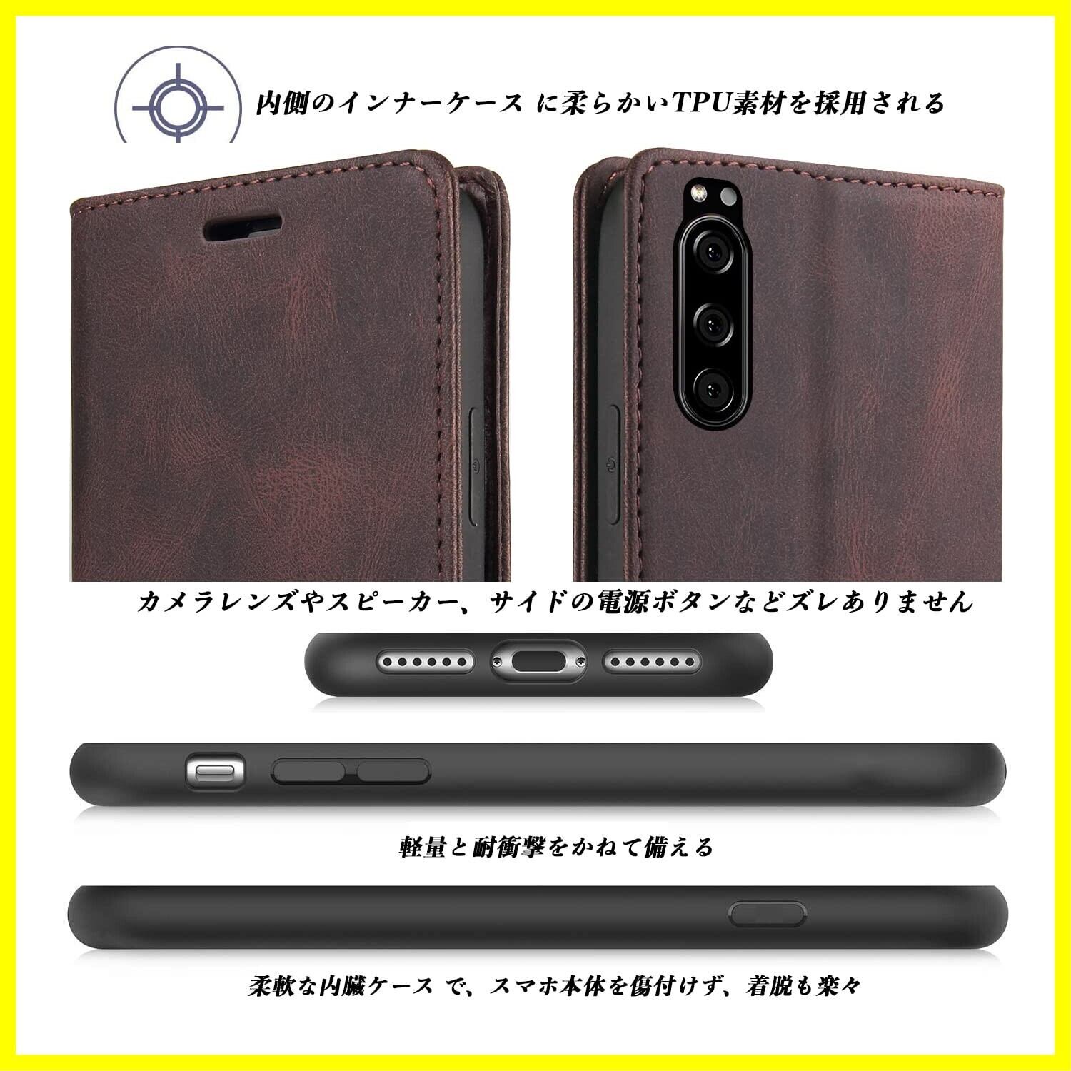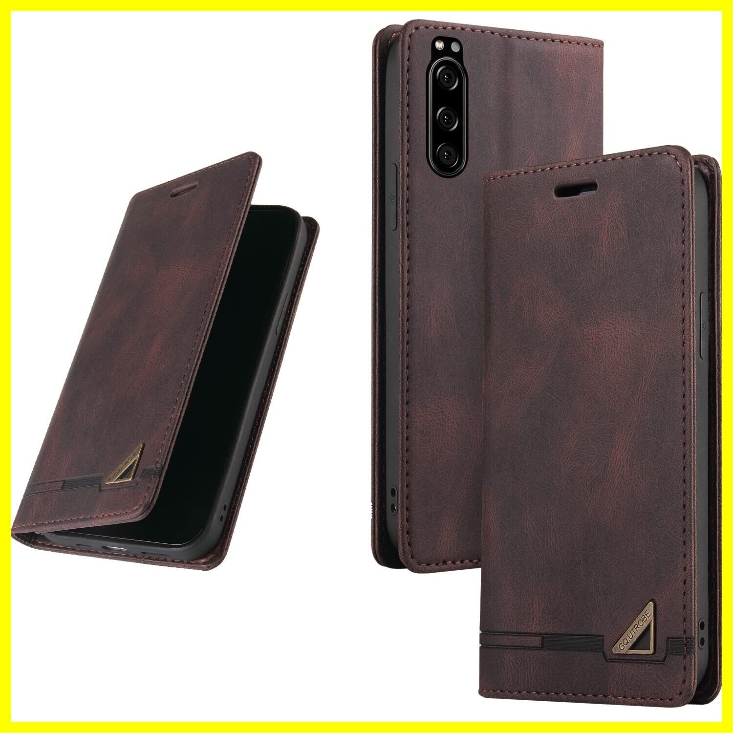 UnivoColors Sony Xperia 5( SO-01M / SOV41 ) 手帳型ケース 高級合皮 スタンド機能 カード収納 マグネット式 TPUソフトカバー 全面保護 カメラ保護 衝撃吸収 RFIDブロッキング おしゃれ カバー(ブラウン)