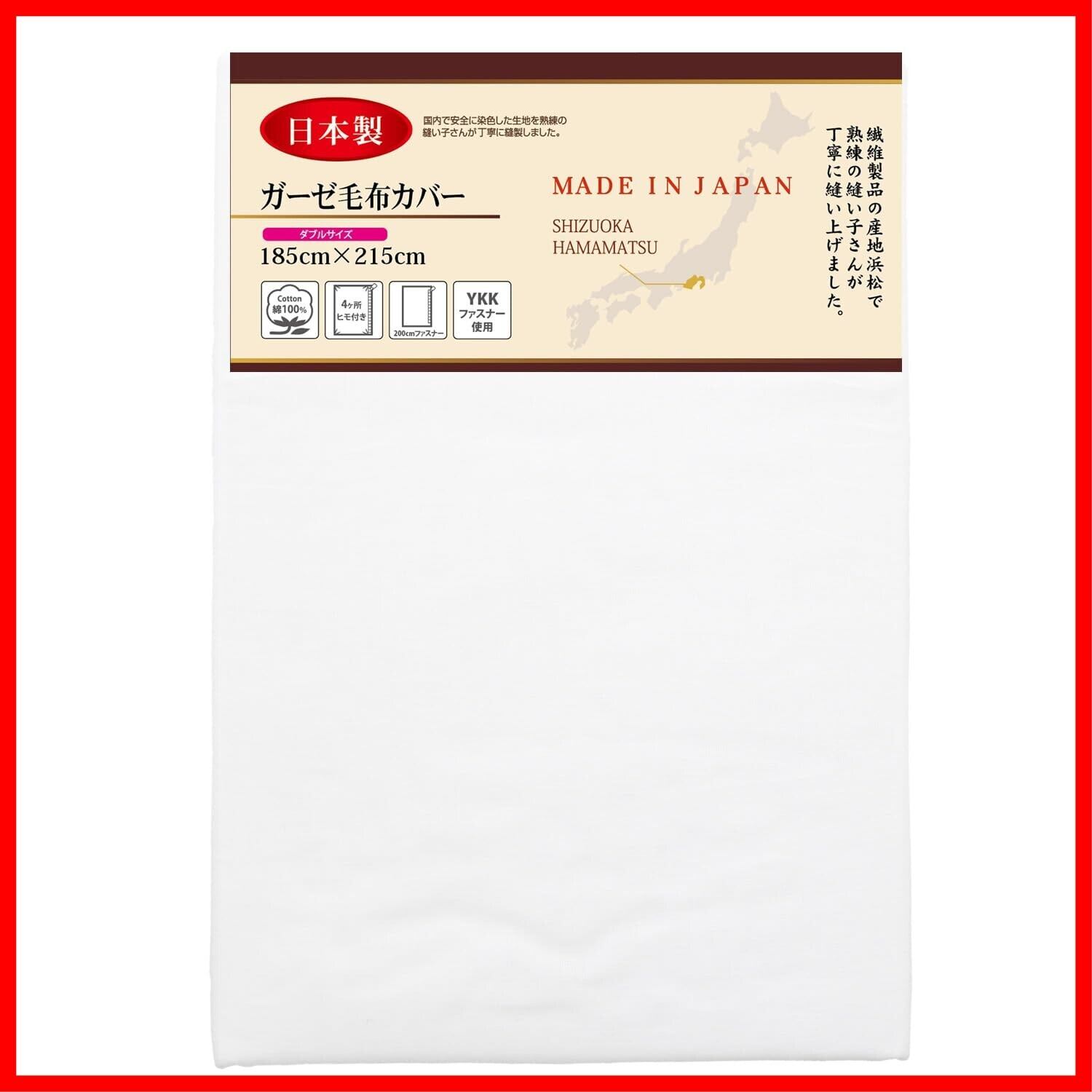 メリーナイト 毛布カバー ガーゼ ホワイト ダブル 約185×215cm 日本製 綿100% 軽量 通気性 ふんわりやさしい肌触り 吸水性 洗える すぐ乾く 衛生的 清潔 毛布の毛羽の飛散を防ぐ 秋冬寝具 1821-06