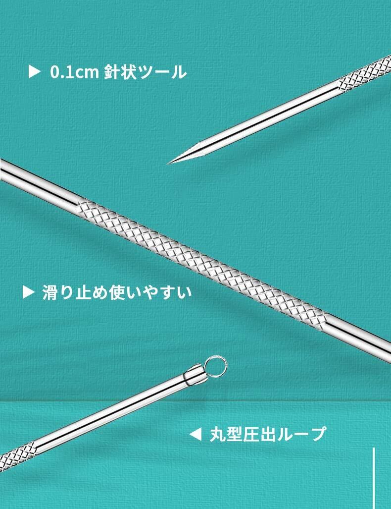 【5本セット】ニキビ取りツールは色々な用途に適しています。顔、鼻周りなどの角栓、黒ニキビ、白ニキビの除去に使用する専用スティックセットです。ニキビや黒ずみだけでなく、毛抜きとしても使用できます。
