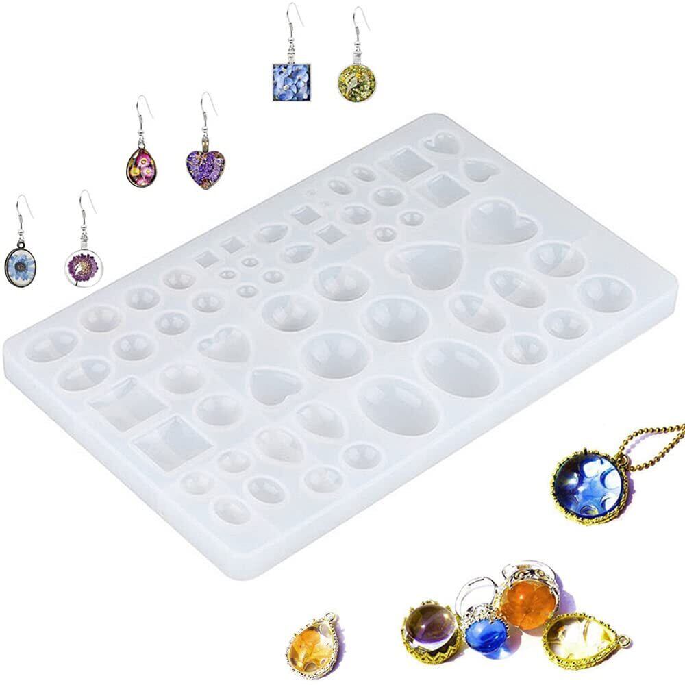 サムコス レジン 水滴 宝石 ハート 半円 楕円 シリコンモールド イヤリング アクセサリーネックレス ペンダント パーツ 作成 DIY 手芸 uvレジン 型取り ドロップ 半円 半球 丸 球体 長方形 正方形 四角
