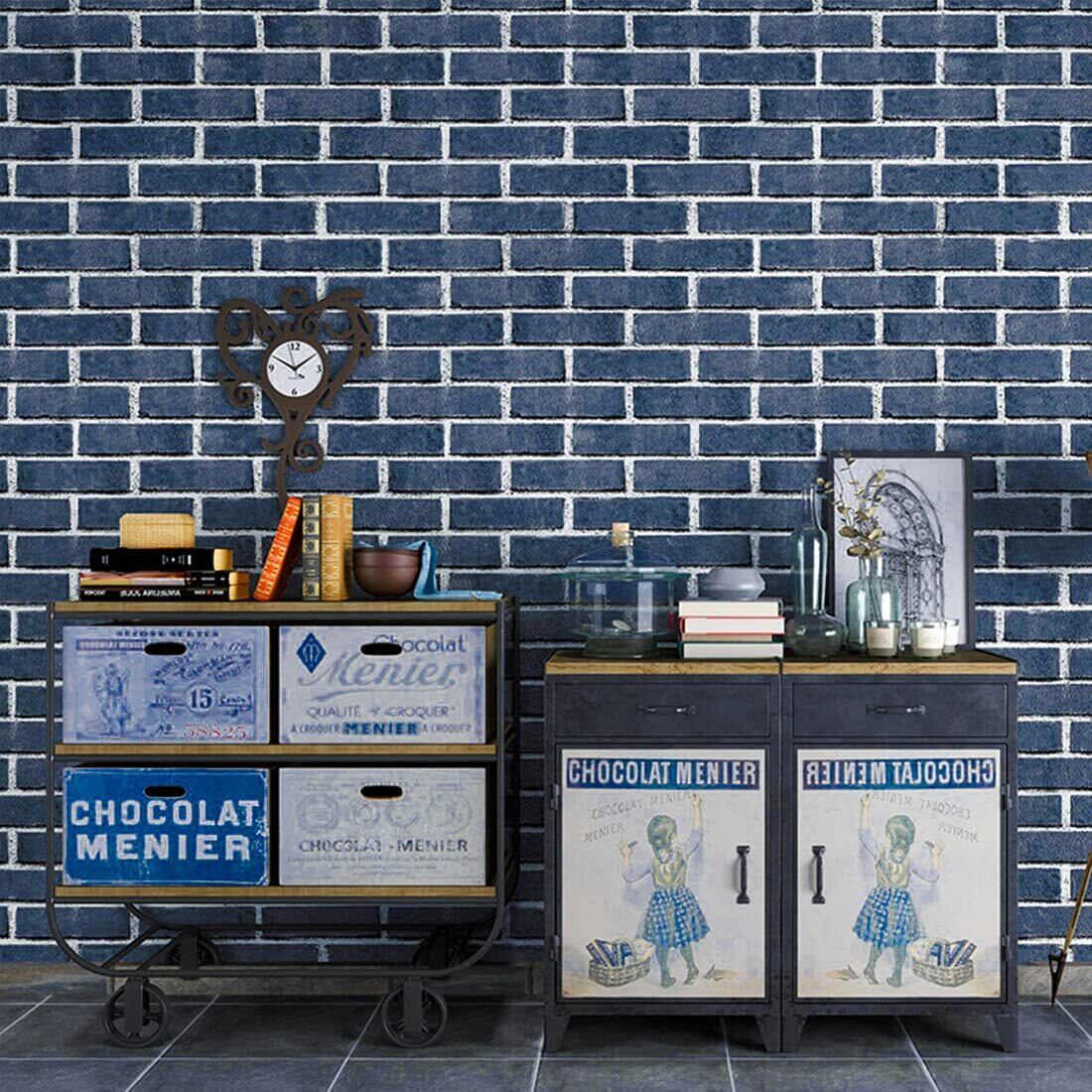 Voyyphixa 青レンガ調 壁紙 壁紙シール 立体 3D 青レンガ のり付き 接着剤不要 剥がせる おしゃれ 45cmx10m リメイク リフォーム カッティング シート ウォール ステッカー 多用途 飾り物 装飾品 (青レンガ)