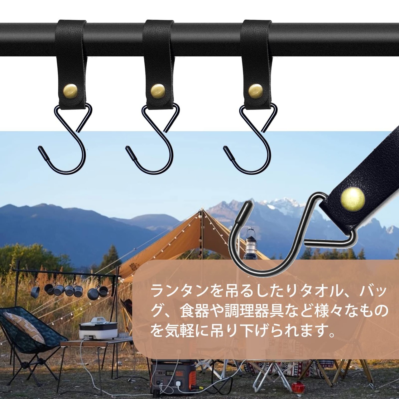 D.SigiYa ランタンフック 金属 PUレザー フック キャンプ アウトドア ハンガー 吊り下げ S字フック ライト 調理器具 キッチン 野外 収納 整理 テントポールフック ランタンハンガー 多機能 ランタンスタンド 組み立て簡単 ハンギングラック