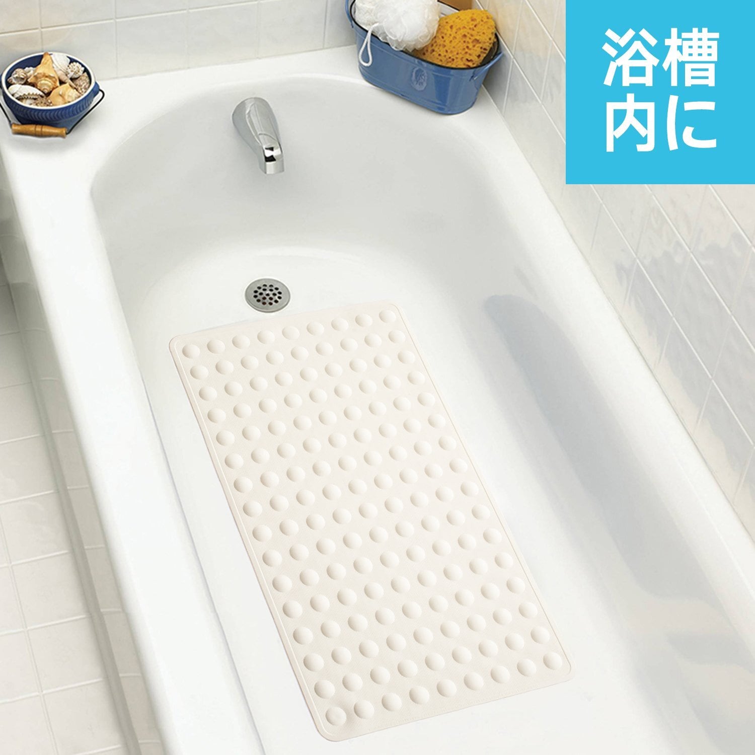 お風呂場で滑って転倒する危険は、お子様、お年寄りだけでなく、ご家族皆にとって“今そこにある危機”。この滑り止めマットですぐ対策を!裏側に吸盤があり、浴槽や洗い場の床にガッチリと貼りつきます。ソフトな素材でクッション性があり、肌触りも快適です。