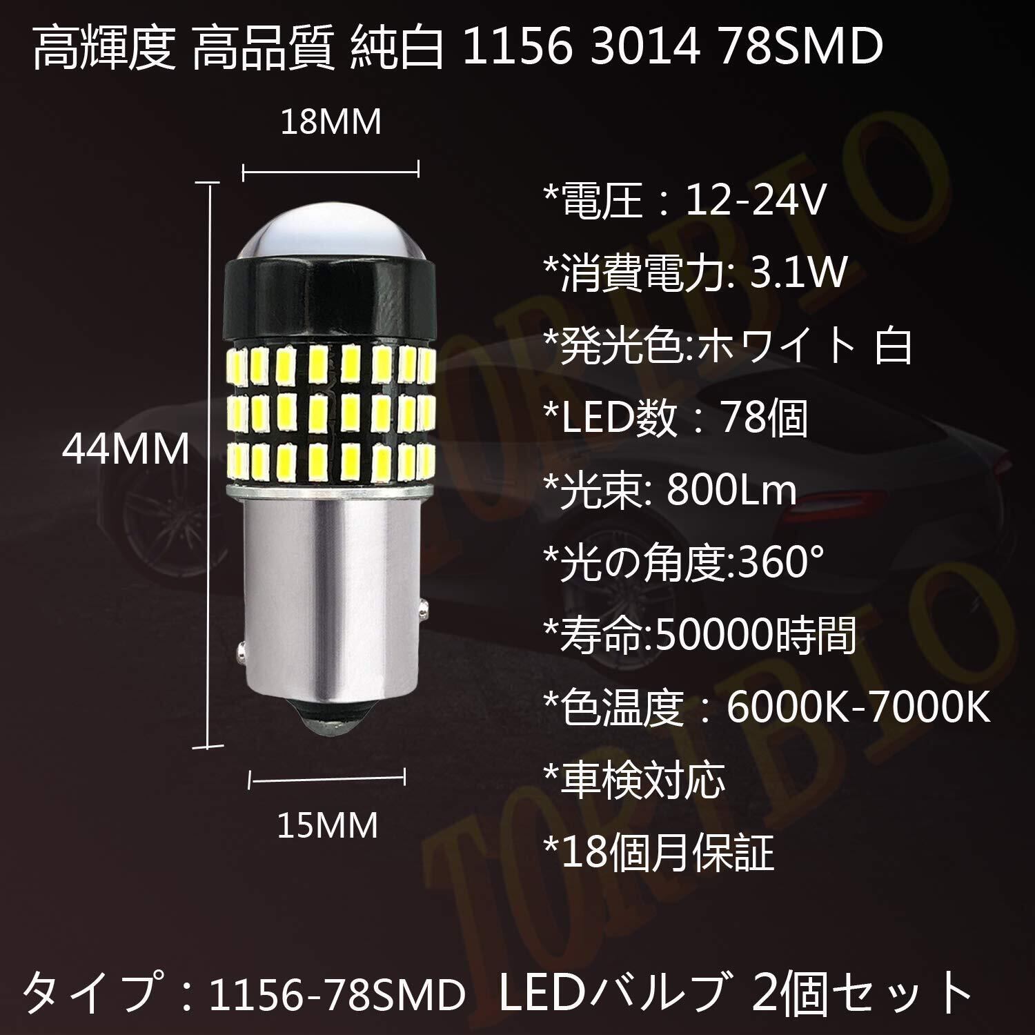 【形状】S25_180°(シングル)BA15S/P21W /1156/ G18 兼用、極性なし、12V-24V専用,1800LM/2個 78LED 3014SMD ホワイト。【】ブランド名:TORIBIO(登録第6135494号)。