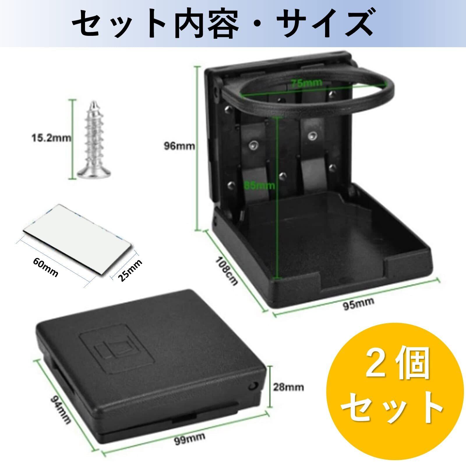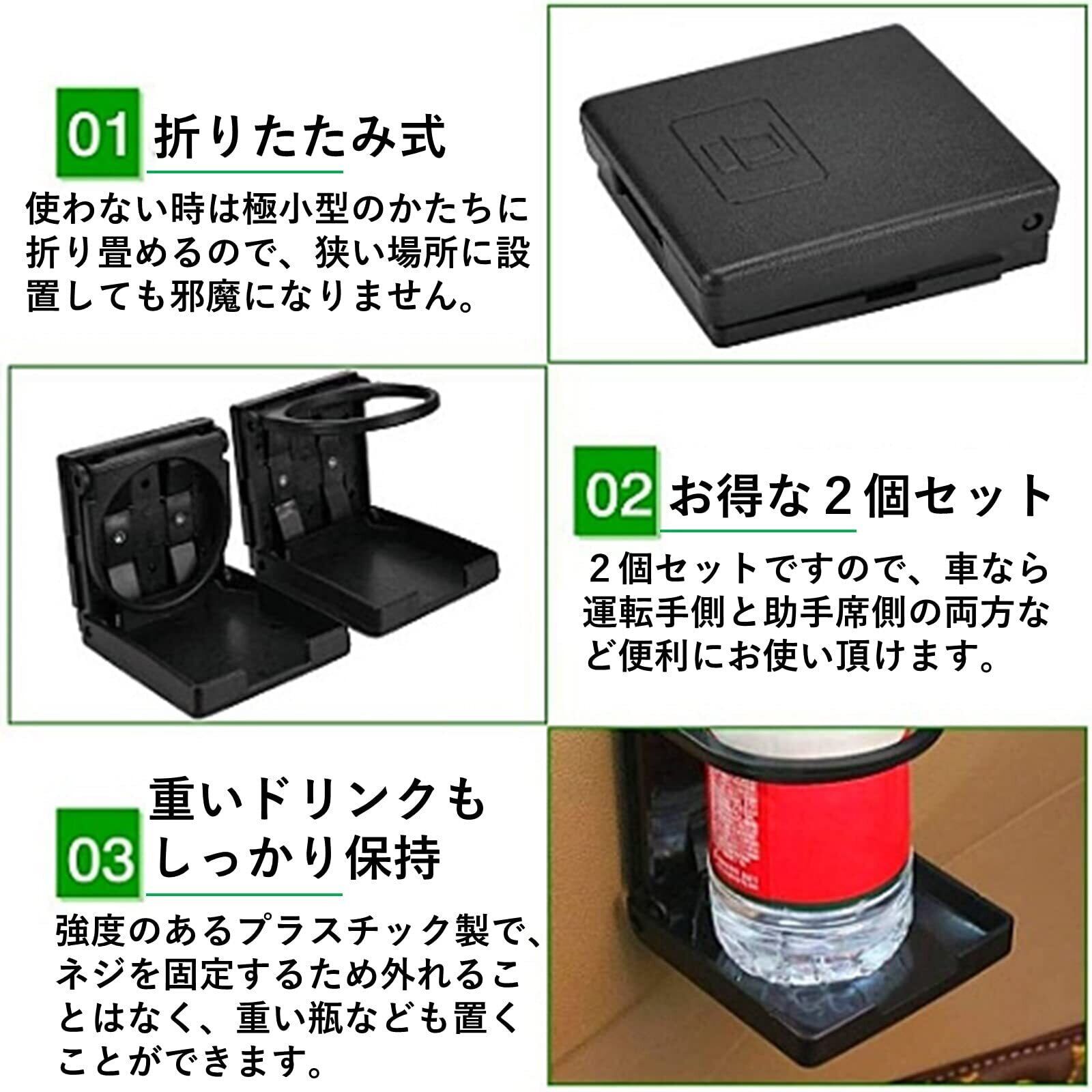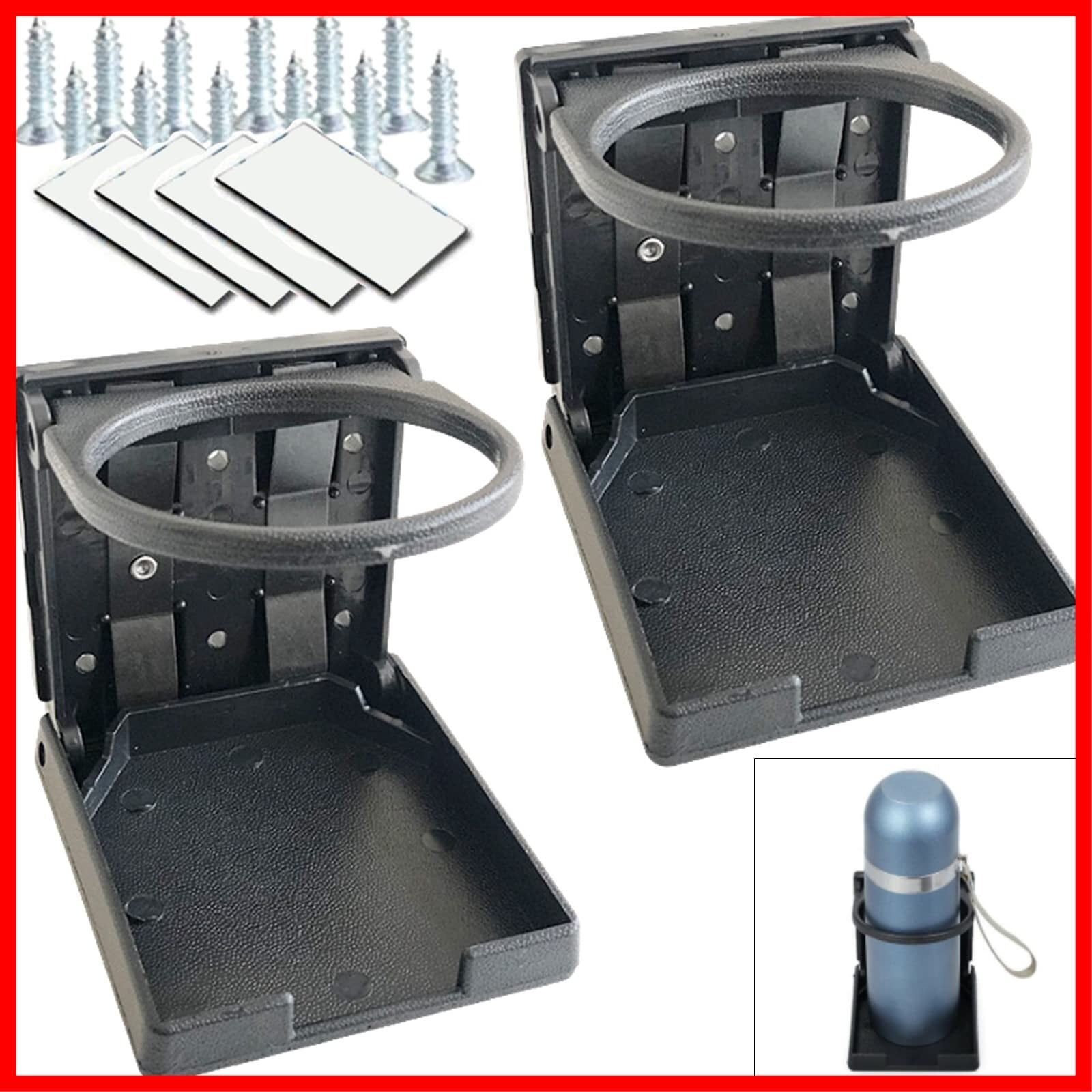 heizi ドリンクホルダー 車 折りたたみ 2個 セット ネジ付き 折り畳み カップホルダー 後部座席 船 ボート トラック (ブラック)
