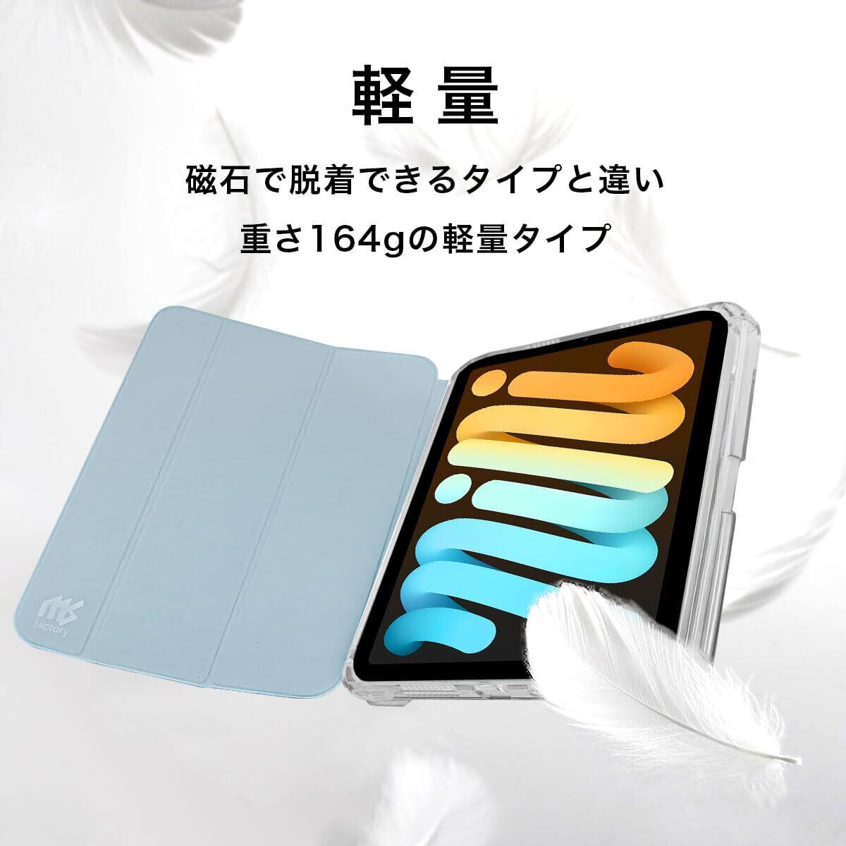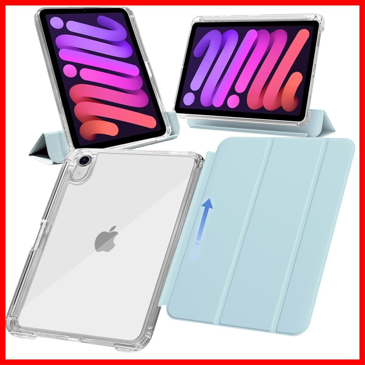 MS factory iPad mini 7 6 用 ケース mini7 (A17 Pro 2024 第7世代) mini6 (2021 第6世代) ペン収納 取り外し可能 軽量 耐衝撃 カバー 縦置き/横置きスタンド アイパッドミニ ソフトフレーム 背面透明 ペールスカイブルー 水色 IPDM6-SLDPEN-PSK