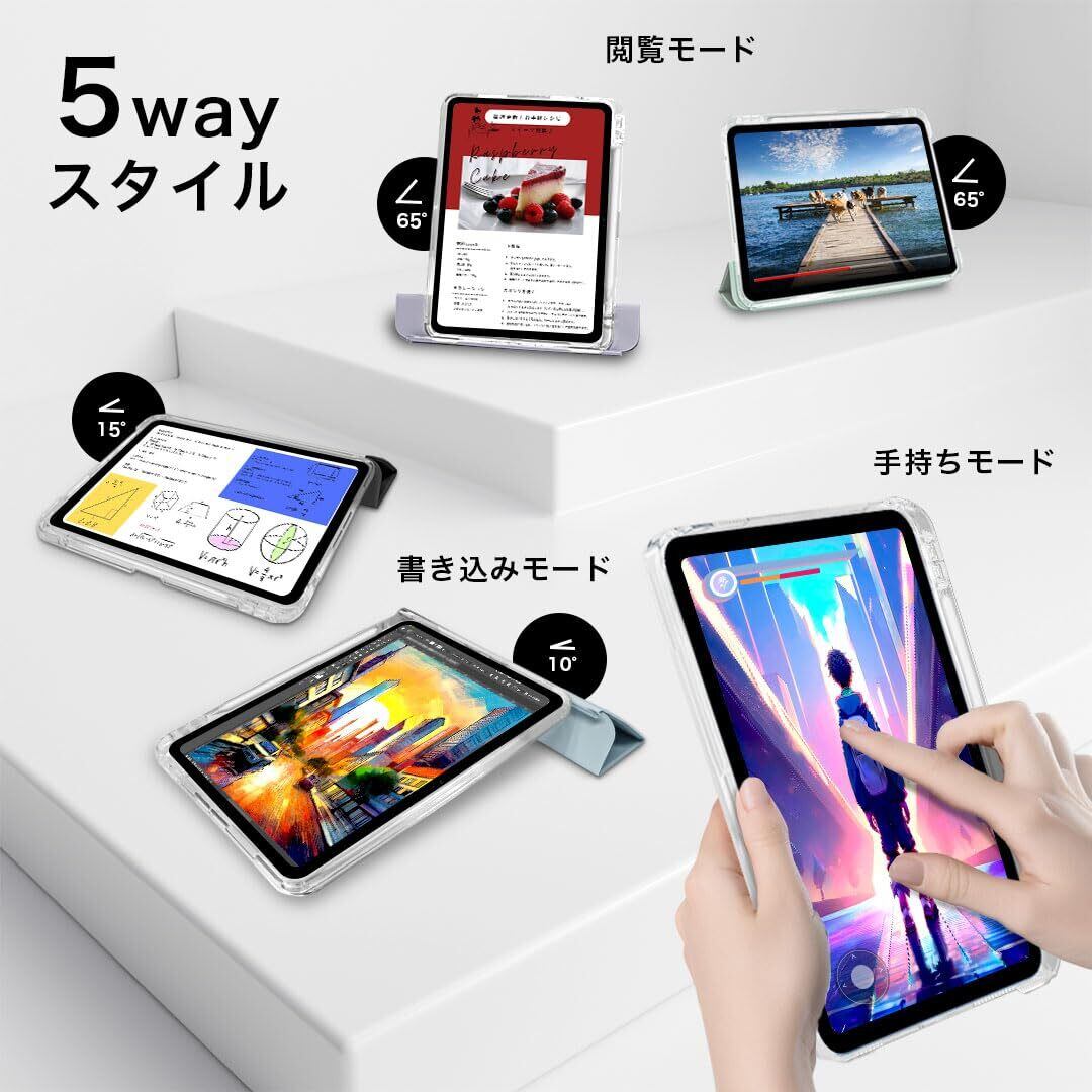 Apple Pencil ホルダー付き スライド式 液晶カバー取り外し可能 軽量 耐衝撃 カバー 縦置き/横置きスタンド ソフトフレーム 背面透明 Appleロゴが透ける 薄型 ケース
