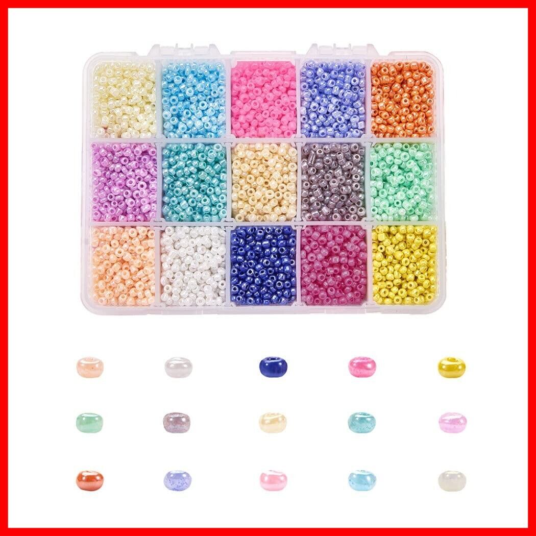 カラフルな15色セットのガラスビーズ。アクセサリークラフト など様々な手芸、DIY、工芸品の作成に役立ちます。