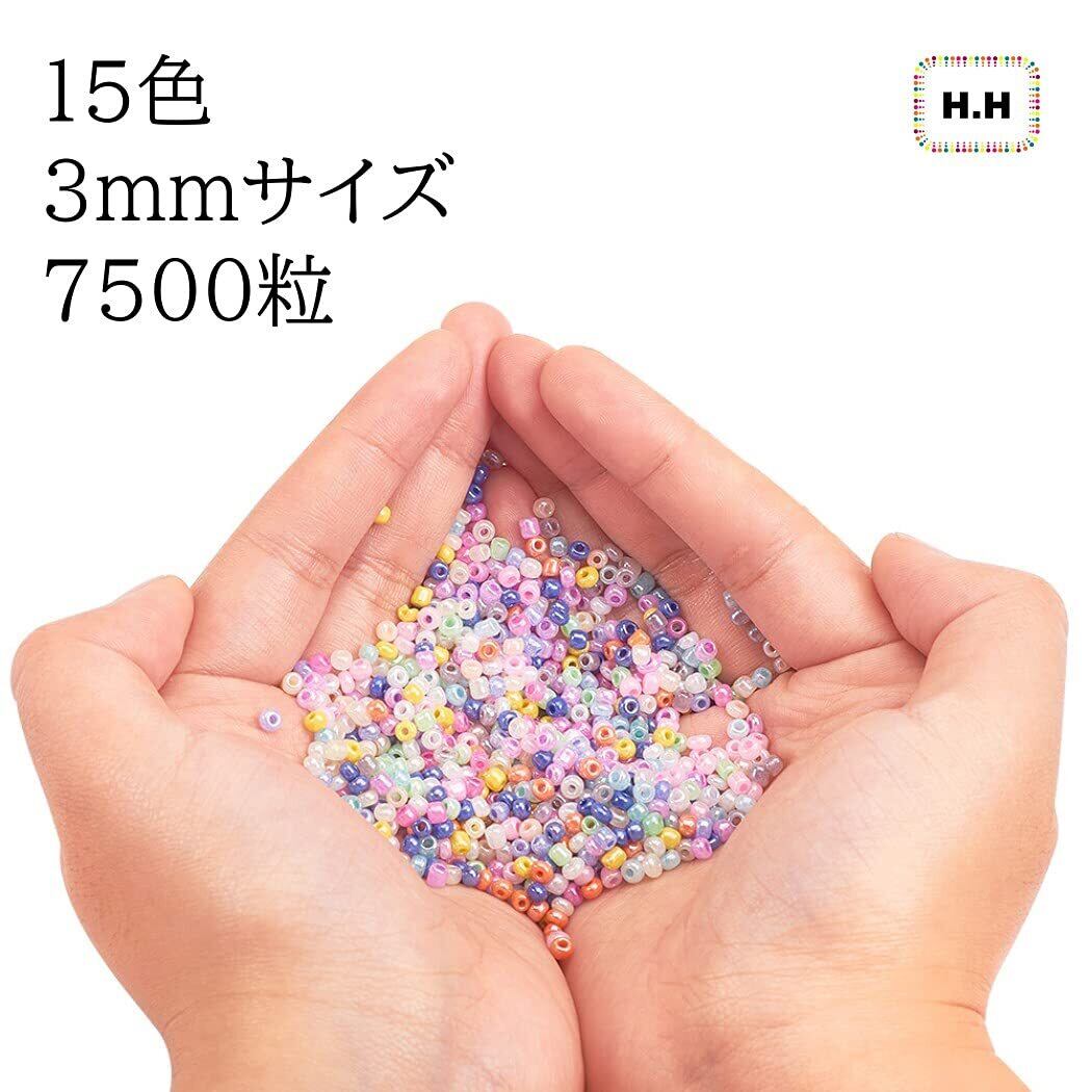 ビーズ 手芸 アクセサリー ガラスビーズ 丸 3mm 15色 7500個 DIY 糸通しビーズ 手作りアクササリー