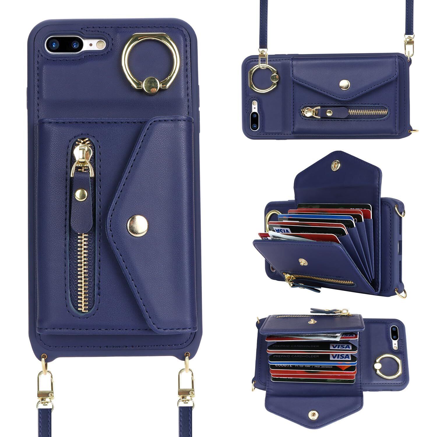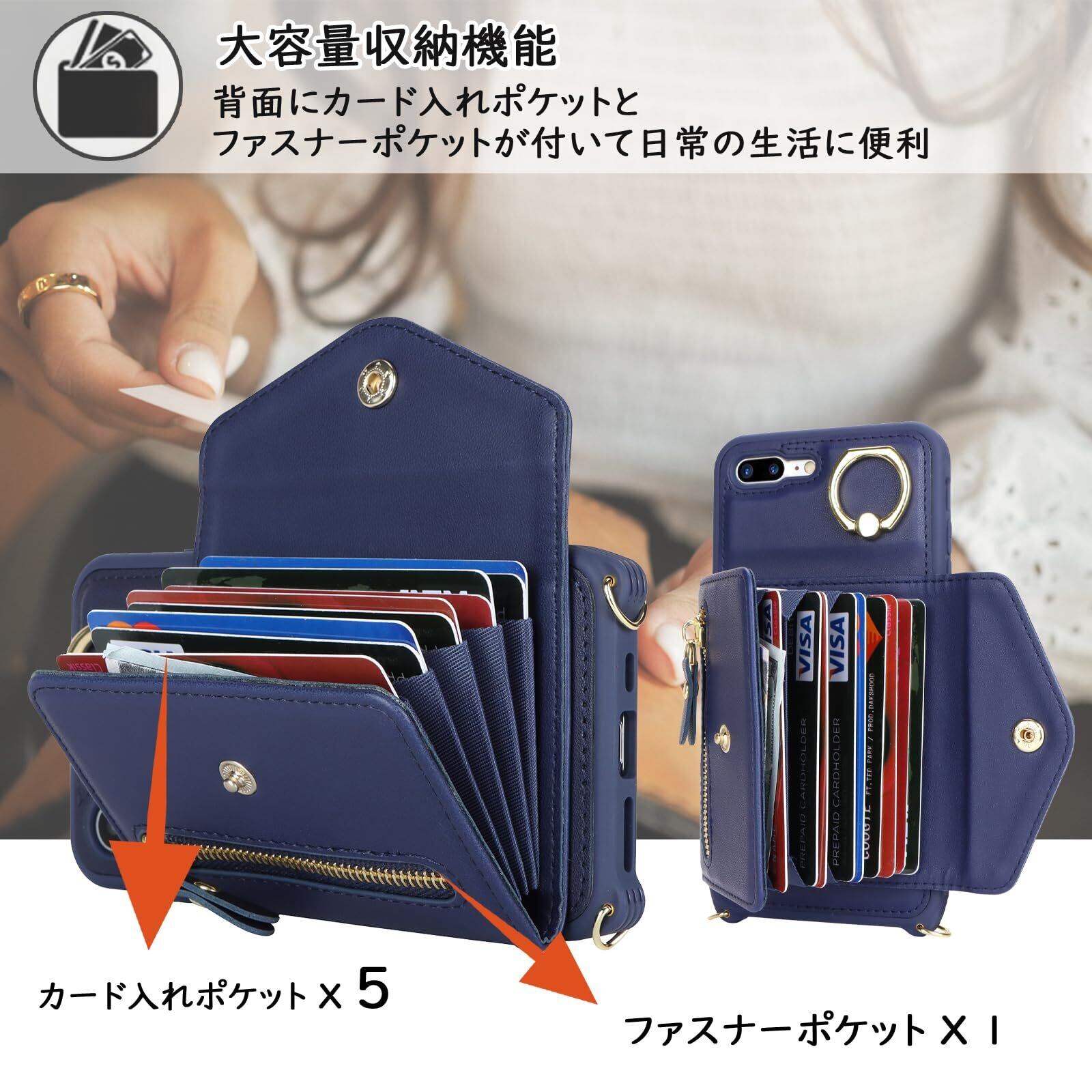 【Hamany】 iphone 8 plus ケース スマホ ショルダー iphone 7 plus ケース 手帳型 ショルダー おしゃれ カード収納 大容量 背面 リング付き スタンド機能 アイフォン8プラス ケース 耐衝撃 耐久性 女性 肩がけ 首掛け 斜め掛け ストラップ付き 長さ調整可能 カバー -ブルー