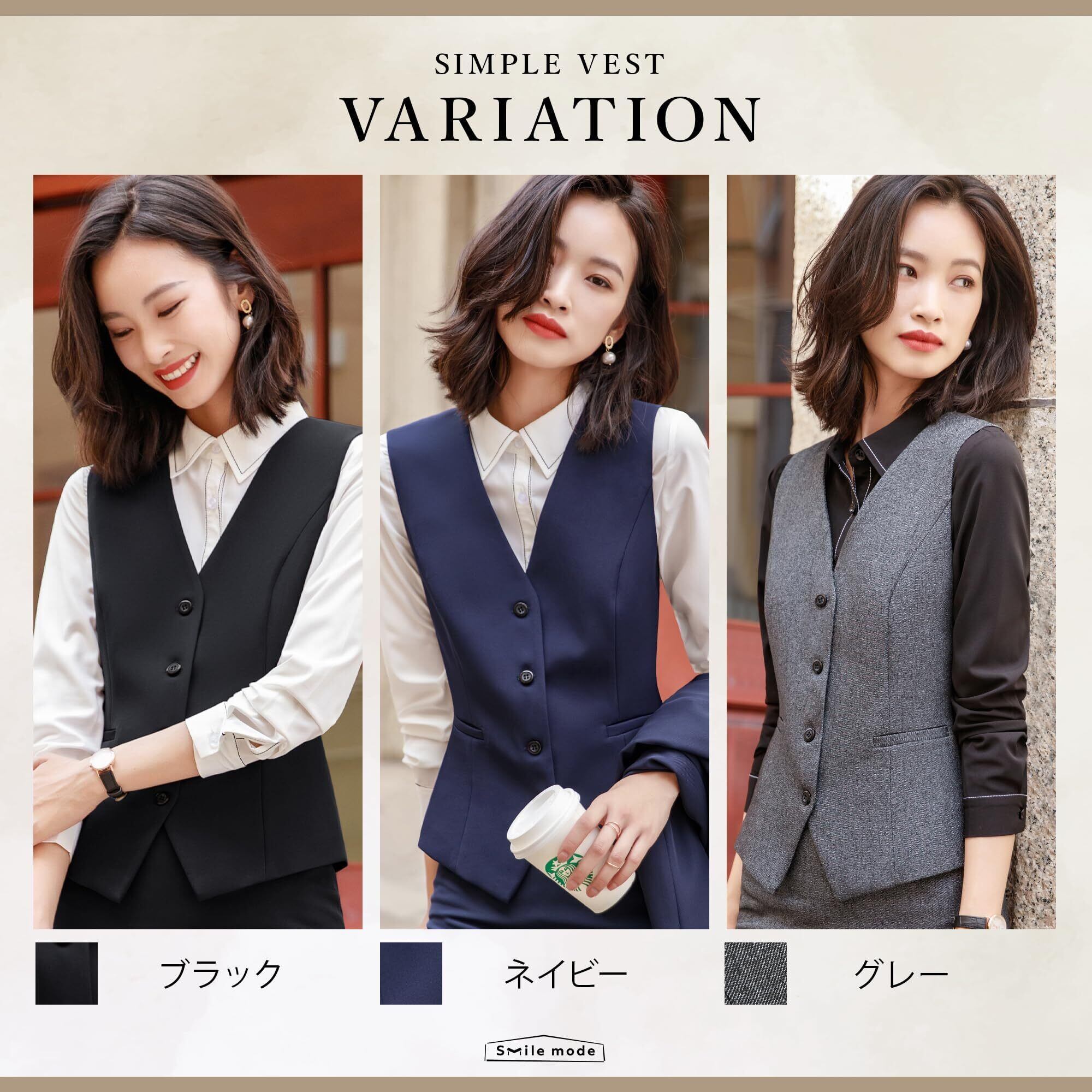 [smile mode] ベスト レディース 事務服 オフィス 制服 レディースベスト 事務服ベスト 単品 女性用 おしゃれ 着痩せ 大きいサイズ