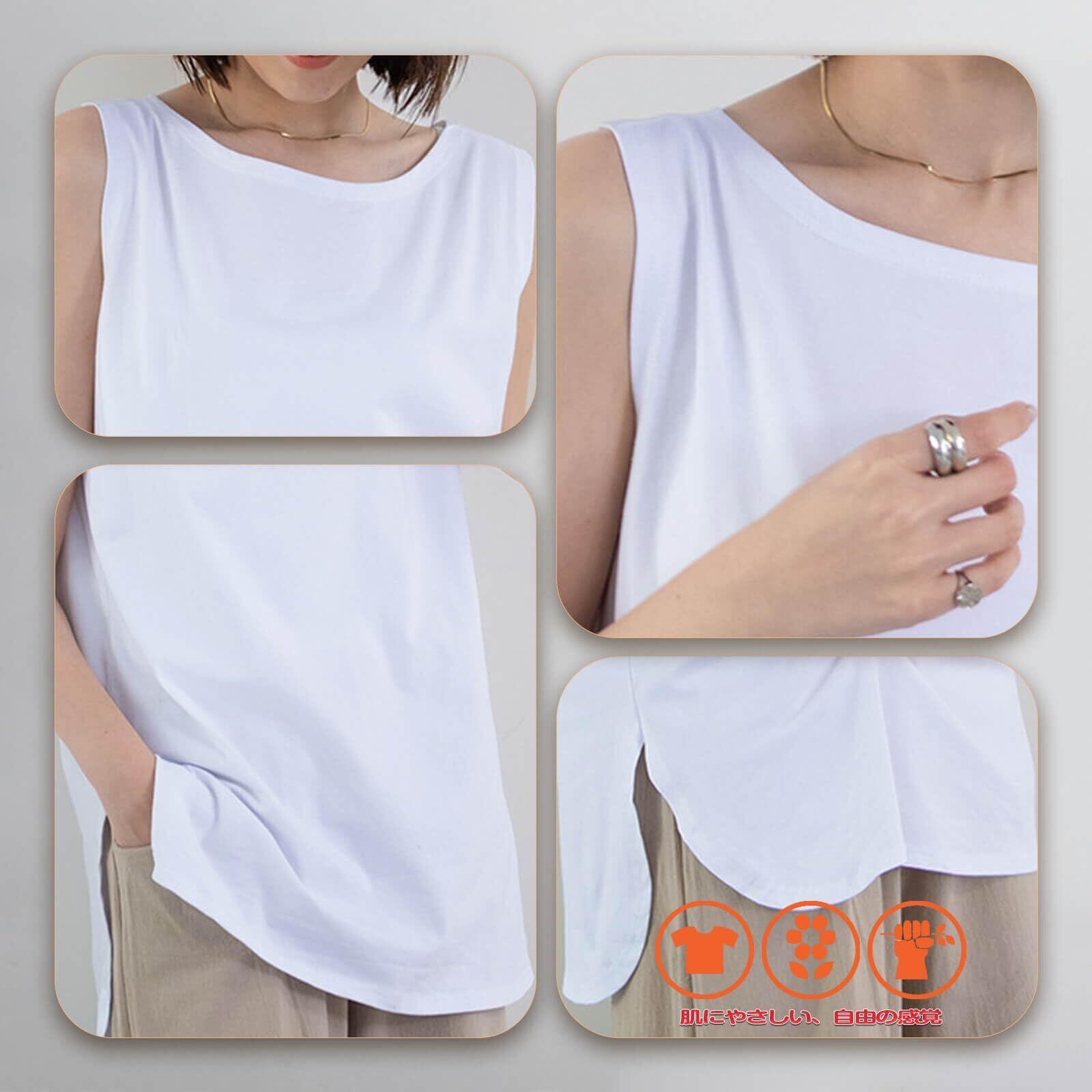 付け裾 レディース向けのスタイリッシュなスリット入り。サイドに施されたスリットが抜け感を演出し、動きやすさを確保します。黒 タンクトップ レディースならではの洗練された見た目が、どんな服とも相性抜群です。