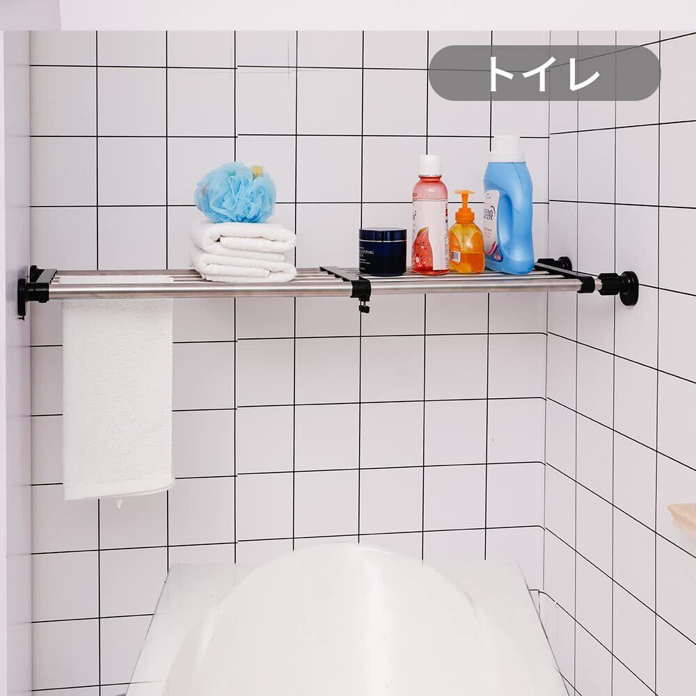 BAOYOUNI 伸縮式 つっぱり棚 スリム 突っ張り棚 つっぱり棒 棚 伸縮棚 突っ張り 黑 取付幅50-80.5cm
