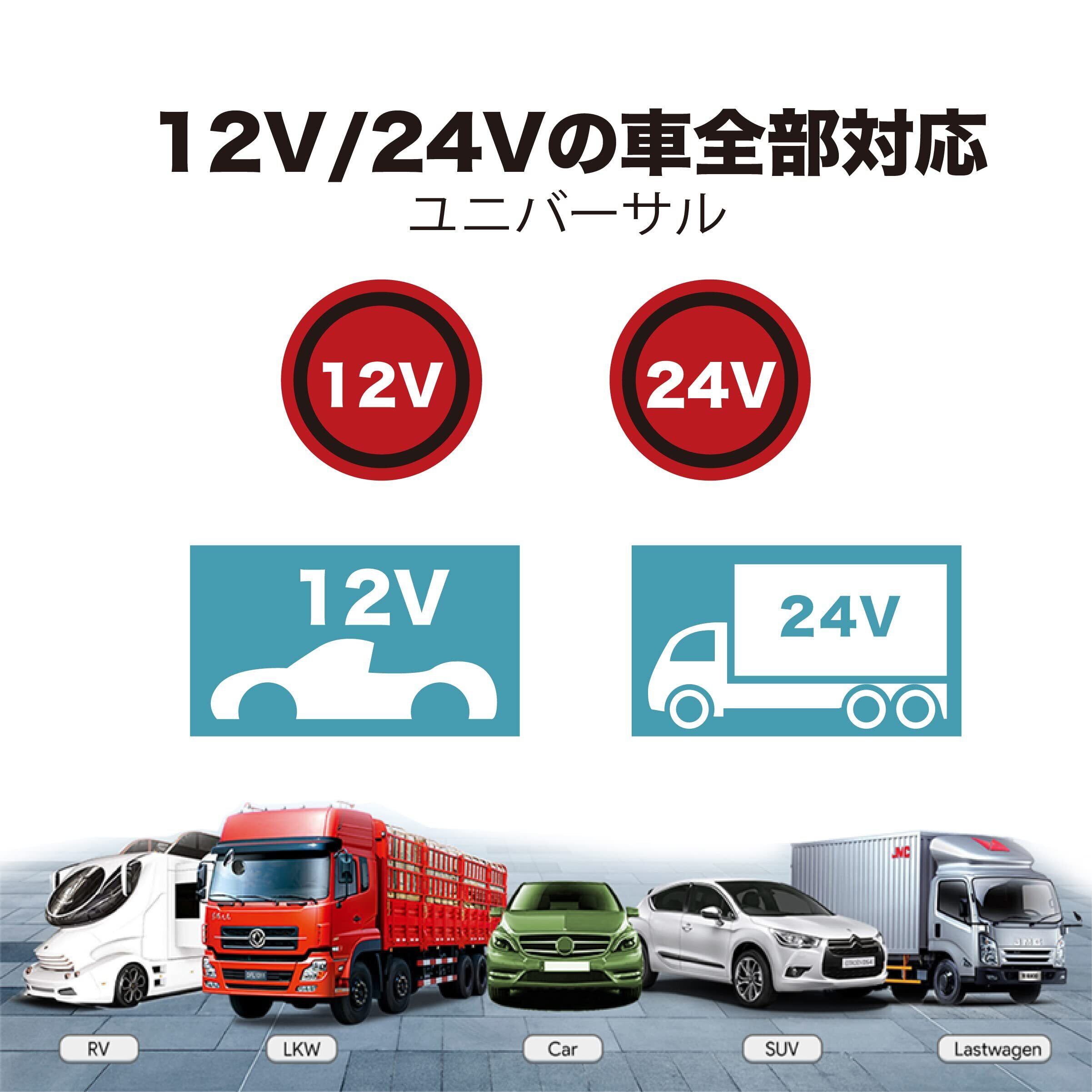 【12V/24V車対応 】12V/24Vの車全部対応できます。道の状況に関係なく、デバイスに安定した電源を供給することができます。
