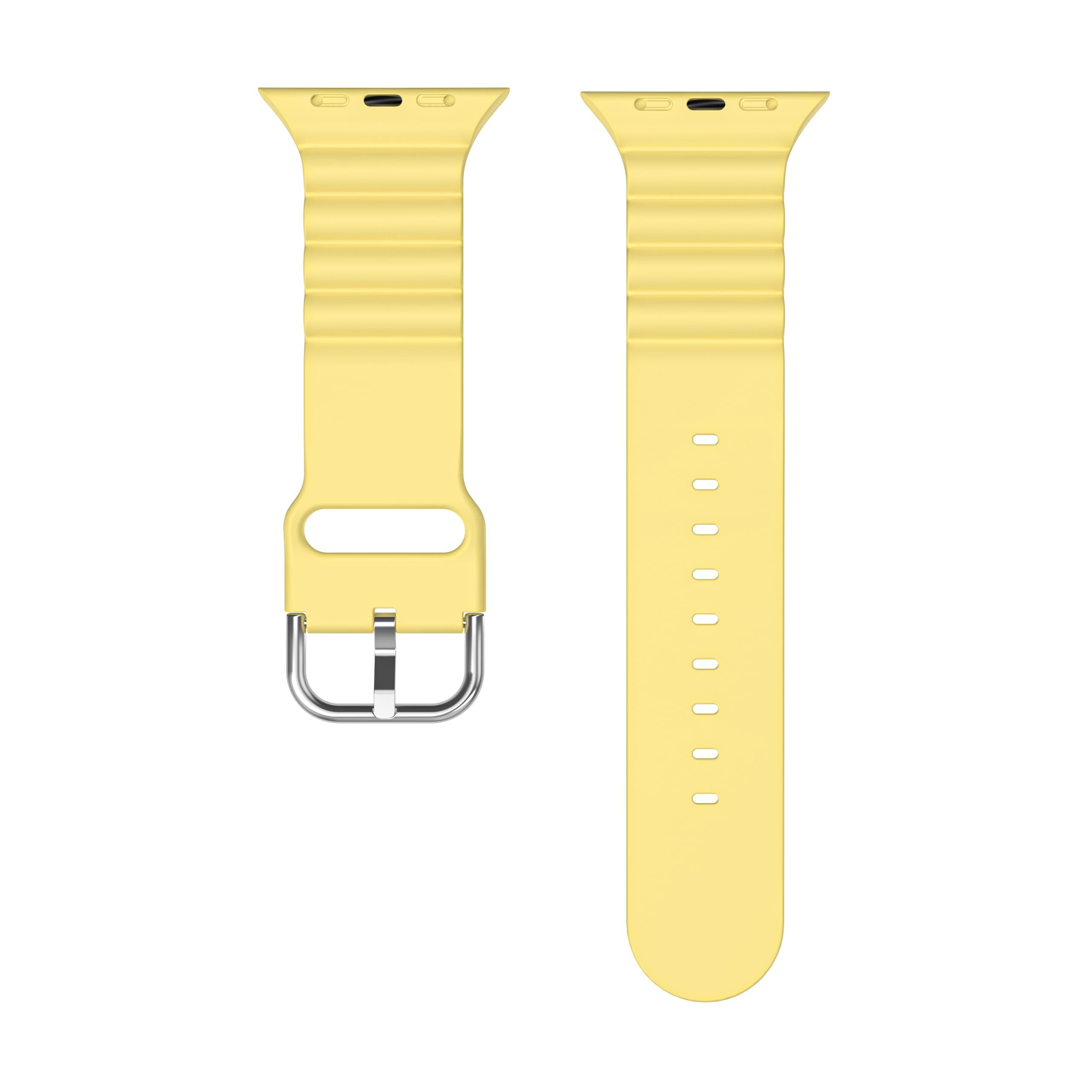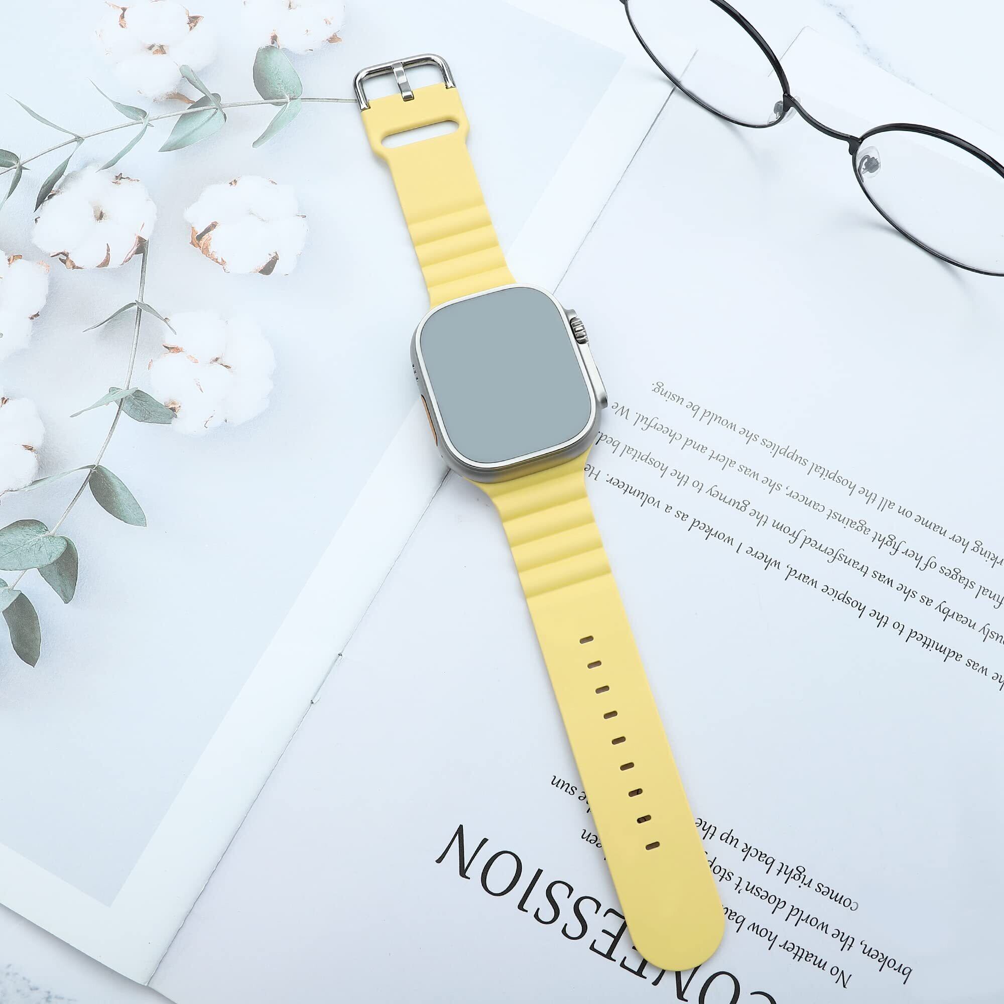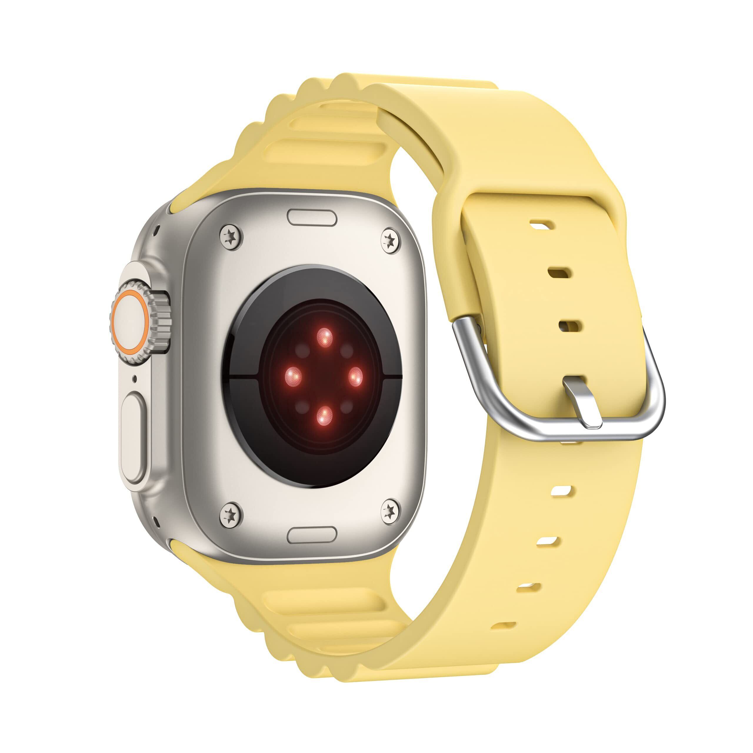 UIUIKA コンパチブル Apple Watch バンド41mm 40mm 38mmアップルウォッチ バンド シリコン製 スポーツバンド Series 9/8/7/SE2/SE/6/5/4/3/2/1対応 長さ調整可能 柔らかい 通気 防汗 防水 耐衝撃(41mm/40mm/38mm,イエロー)