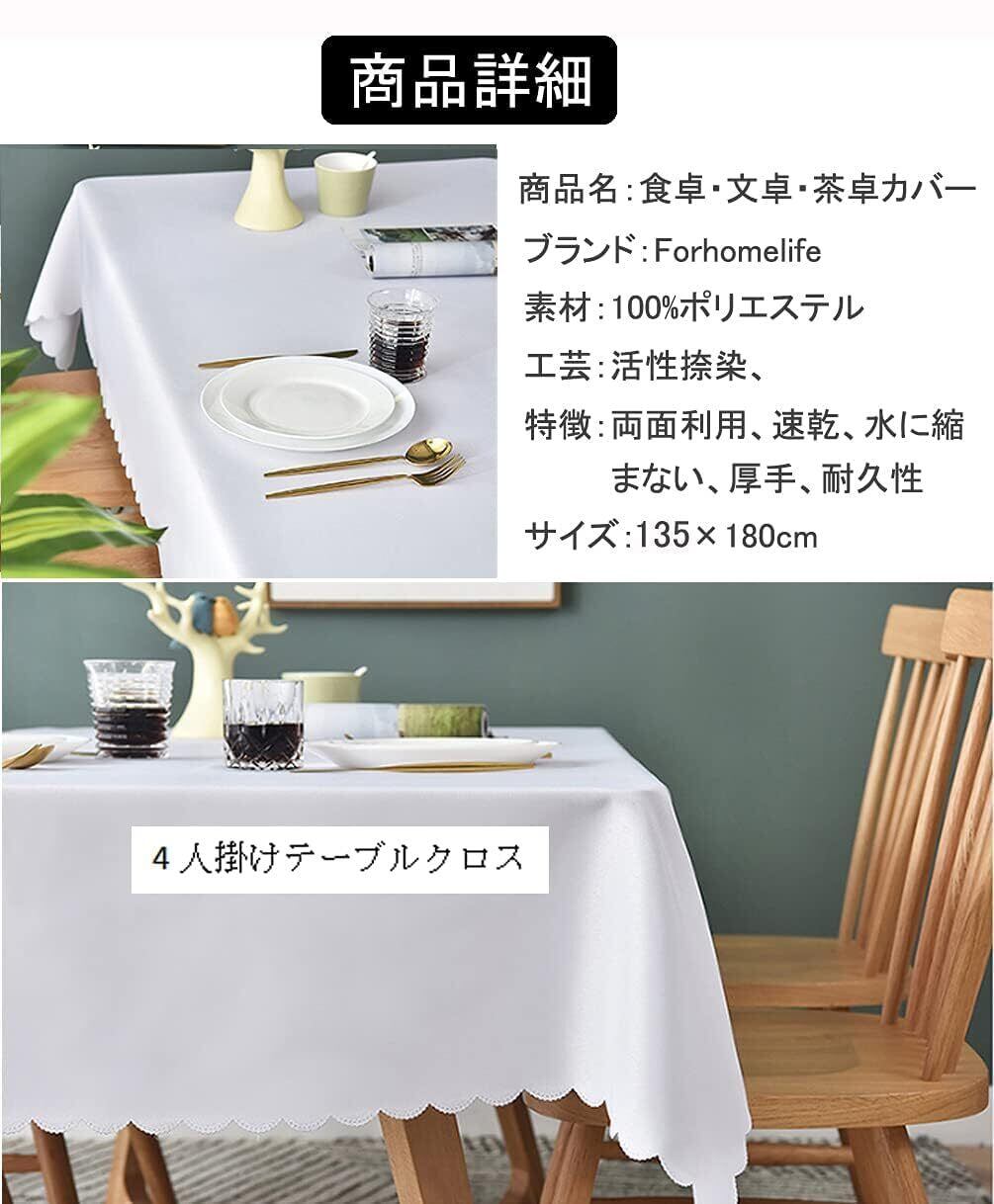 Forhomelife テーブルクロス 白 無地 テーブルカバー シンプル 長方形 140×140cm 洗える ウォッシャブル 洗濯可 速乾 ホワイト 厚手 耐熱