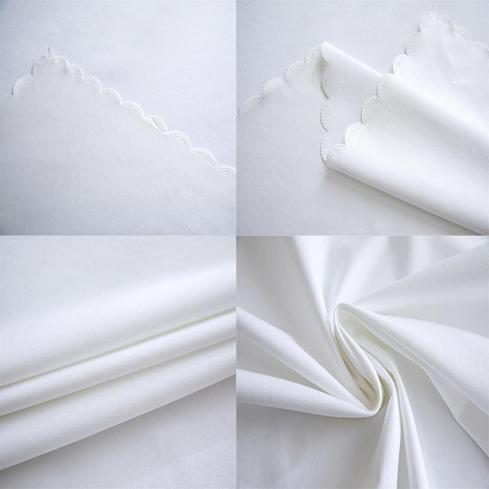 【4人掛けテーブルクロス】裾はスカラップ仕上げで可愛らしい雰囲気になっています。サイズは135×180cmで4人掛けテーブルにオススメ。